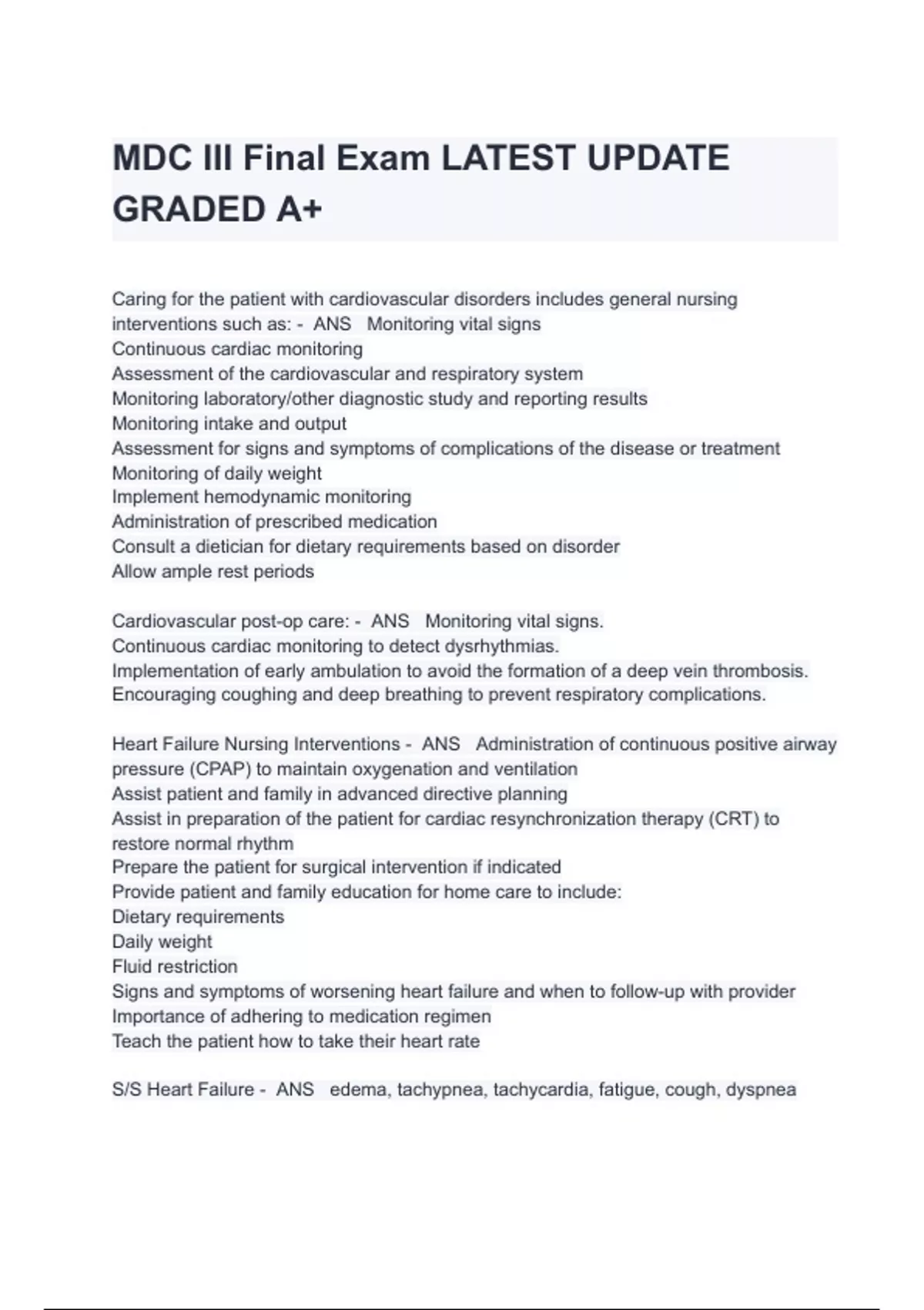 MDC III Final Exam LATEST UPDATE GRADED A+