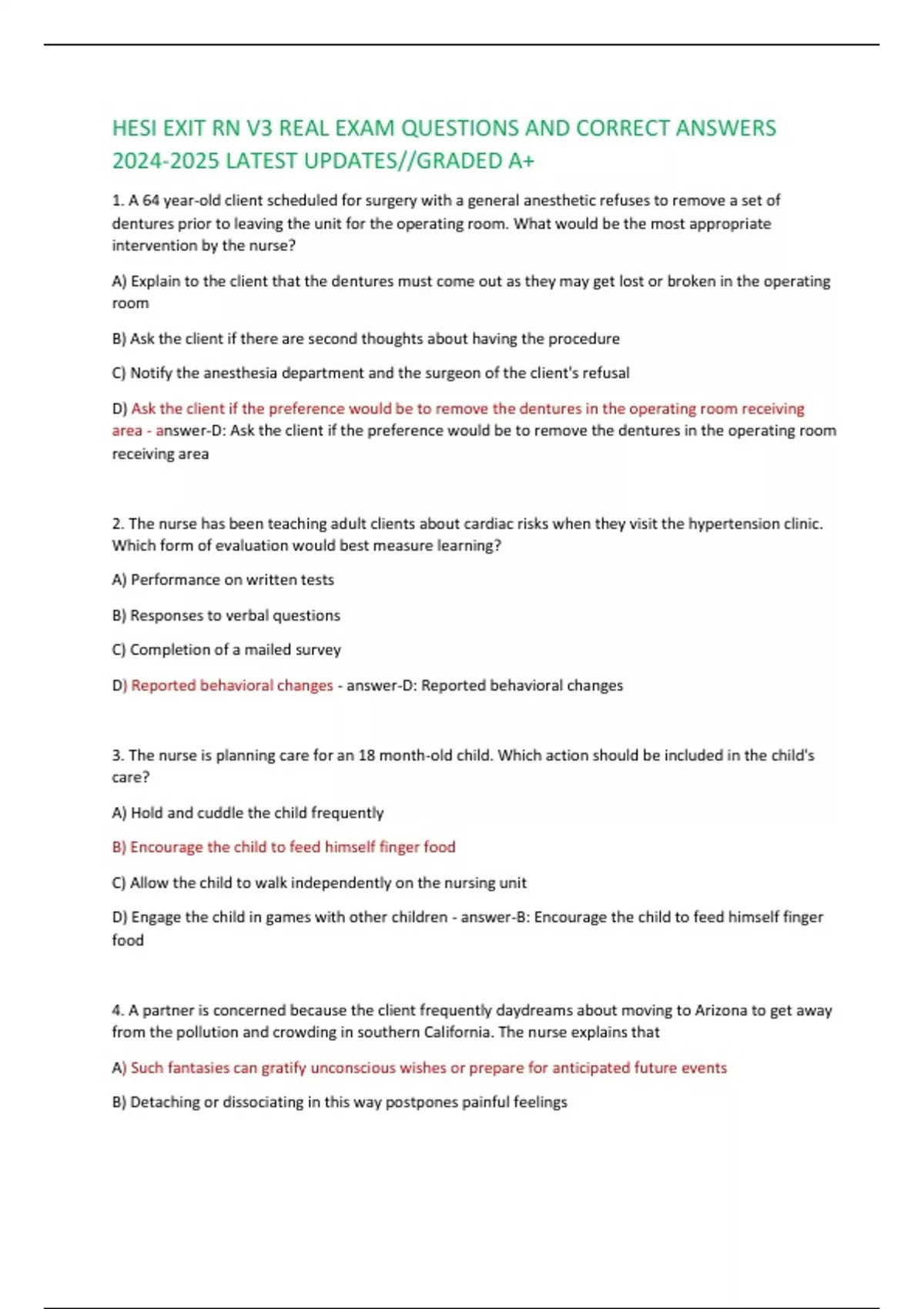 HESI EXIT RN V3 REAL EXAM QUESTIONS AND CORRECT ANSWERS LATEST UPDATES//GRADED A+
