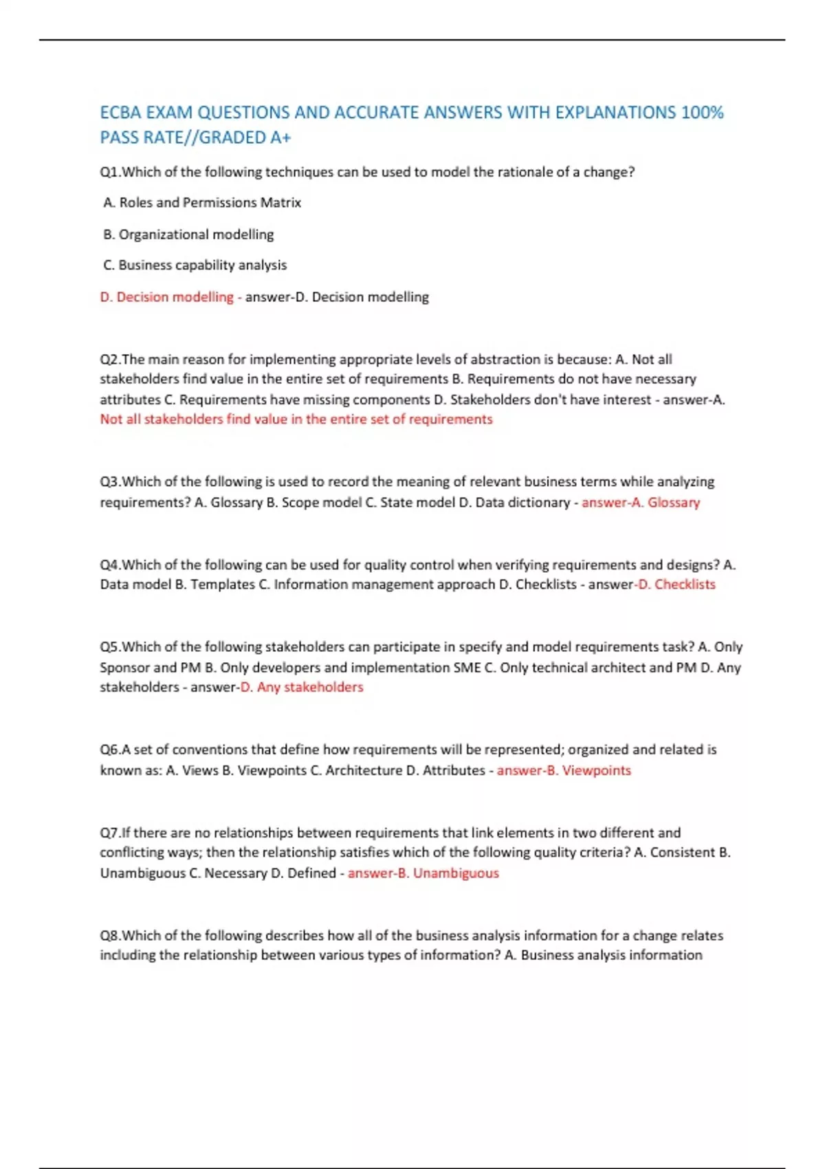 ECBA EXAM QUESTIONS AND ACCURATE ANSWERS WITH EXPLANATIONS 100% PASS RATE//GRADED A+ ECBA EXAM QUESTIONS AND ACCURATE ANSWERS WITH EXPLANATIONS 100% PASS RATE//GRADED A+ ECBA EXAM QUESTIONS AND ACCURATE ANSWERS WITH EXPLANATIONS 100% PASS RATE//GRADED A+