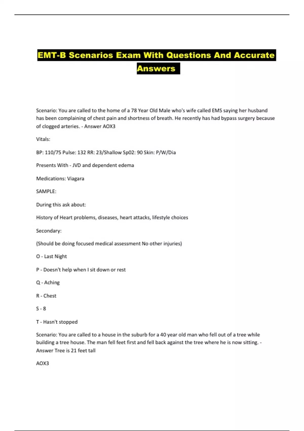 EMT-B Scenarios Exam With Questions And Accurate Answers ...