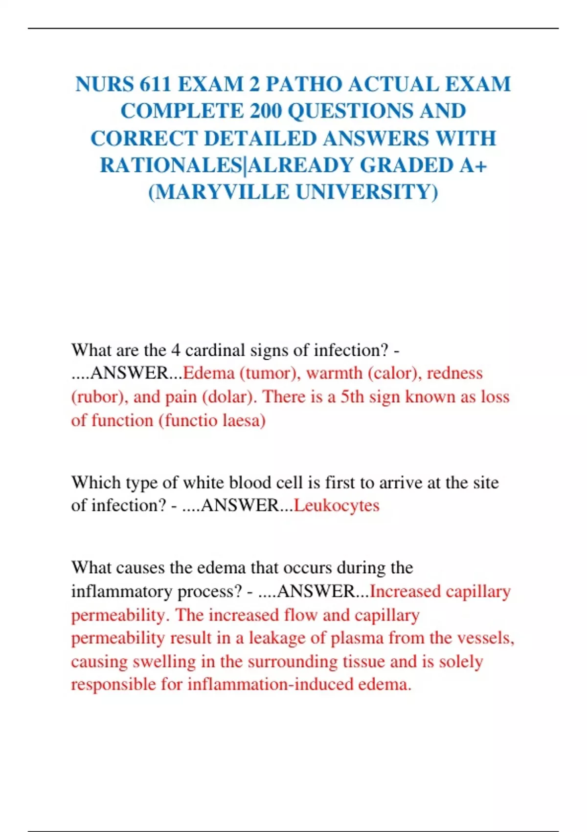 nurs 611 exam 2 patho actual exam complete 200 qu