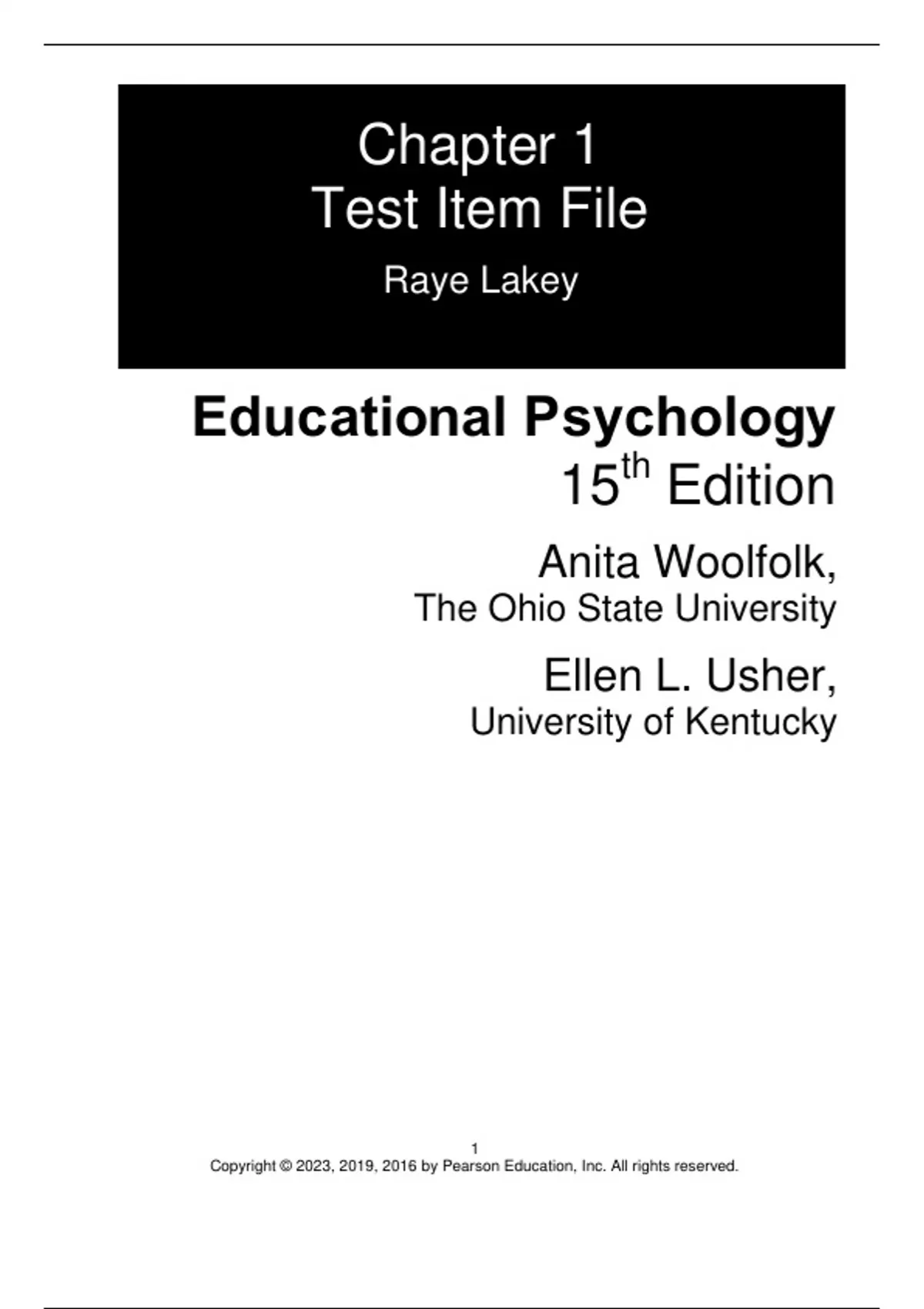 Test Bank For Educational Psychology, 15th Edition by Anita Woolfolk Ellen L. Usher Chapter 1-15