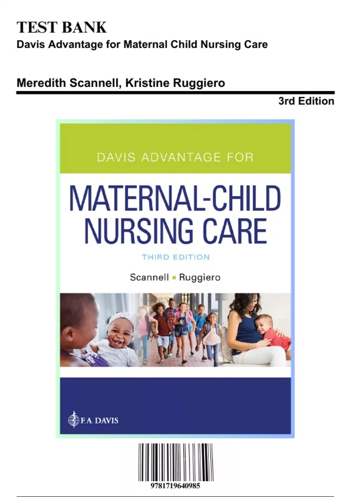 Test Bank for Davis Advantage for Maternal Child Nursing Care, 3rd Edition by Scannell, 9781719640985, Covering Chapters 1-33 | Includes Rationales