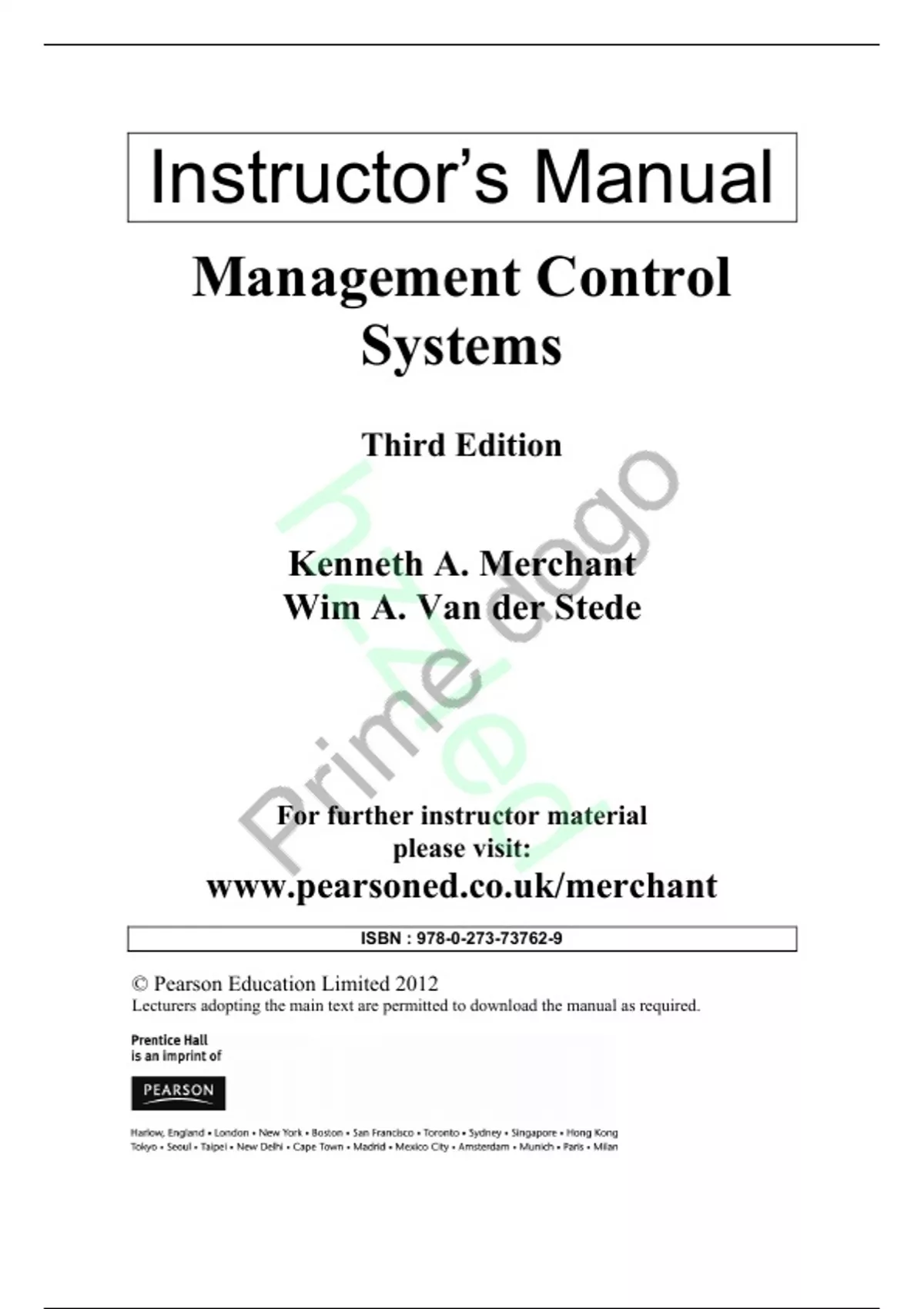 , Merchant & Van der Stede, Management Control Systems, 3rd edition, Instructor’s Manual