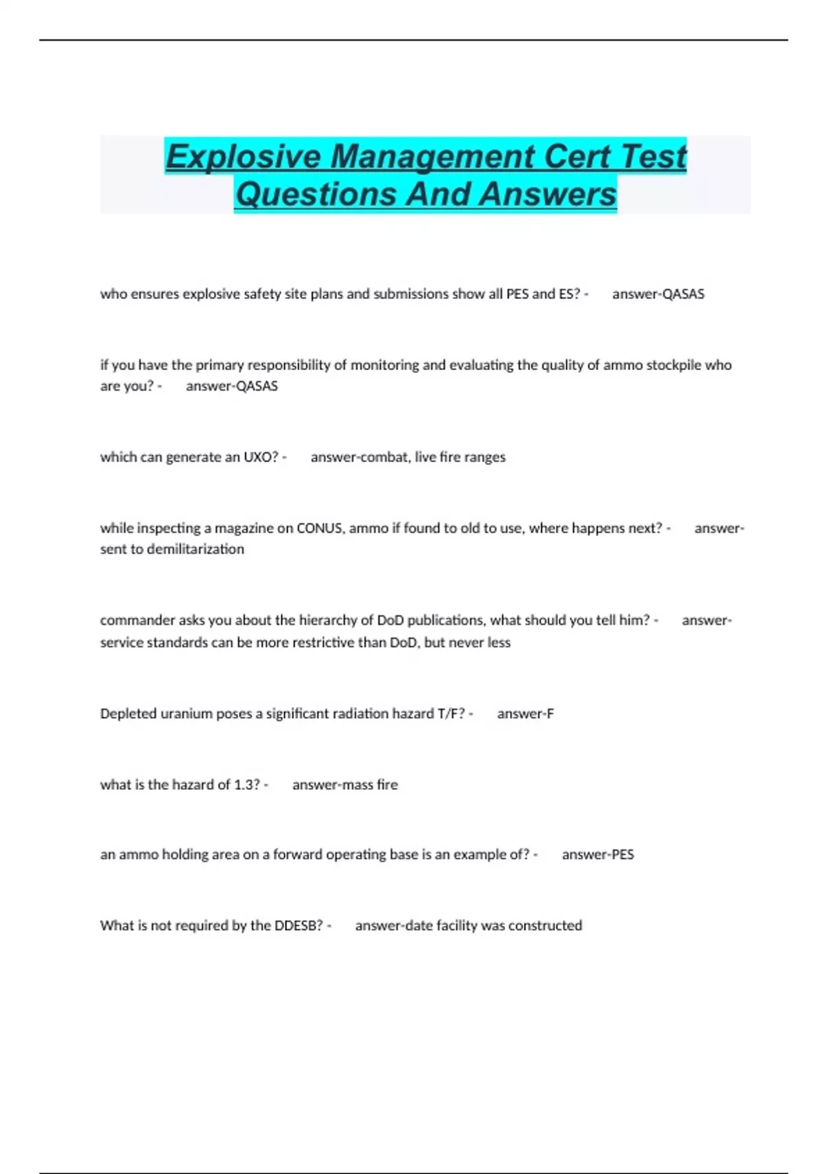 Explosive Management Cert Test Questions And Answers