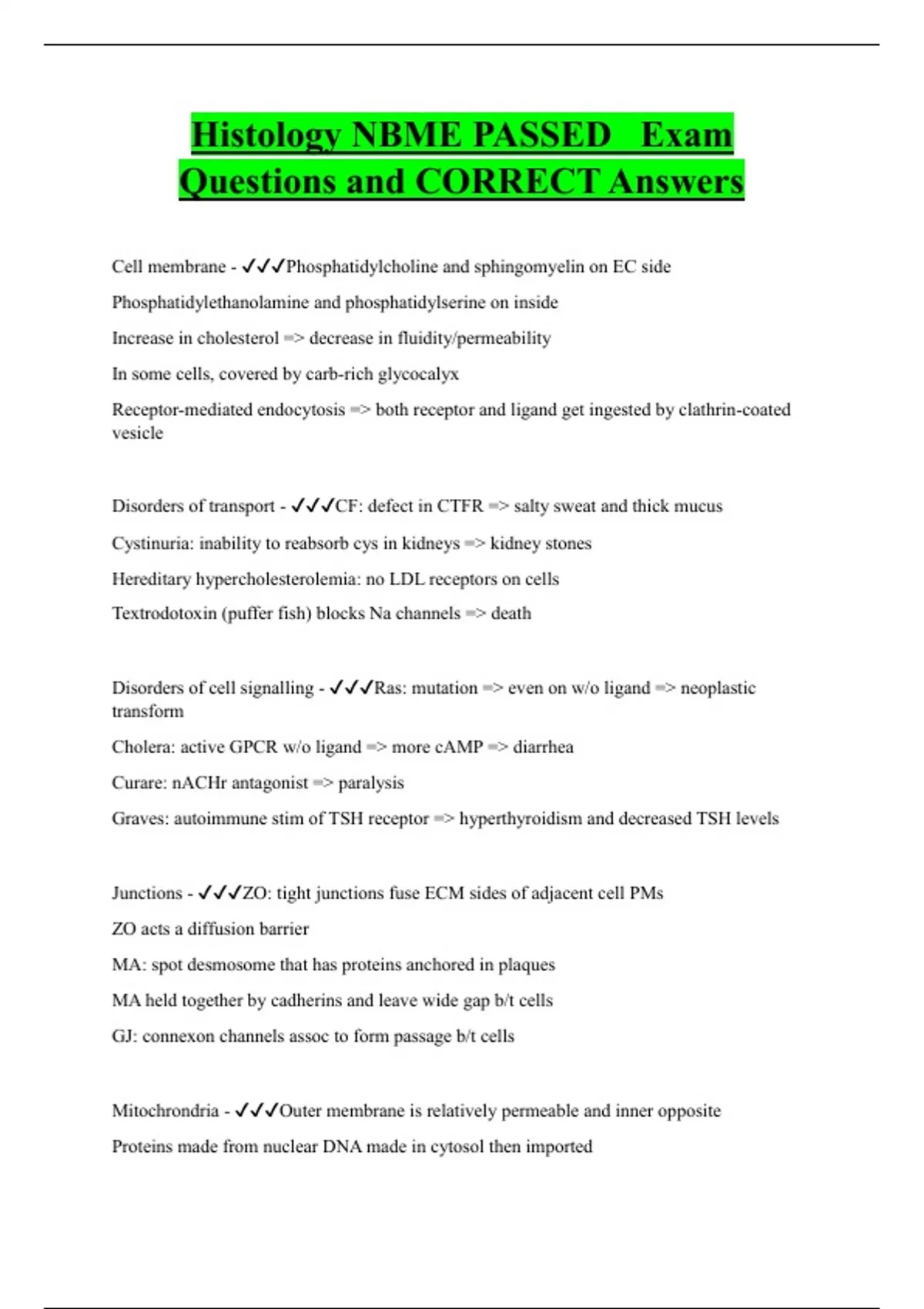 Histology NBME PASSED Exam Questions and CORRECT Answers