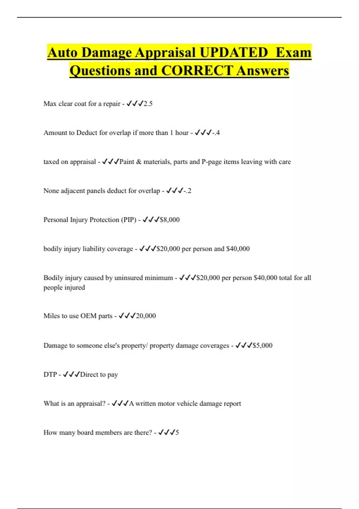 Auto Damage Appraisal UPDATED Exam Questions and CORRECT Answers