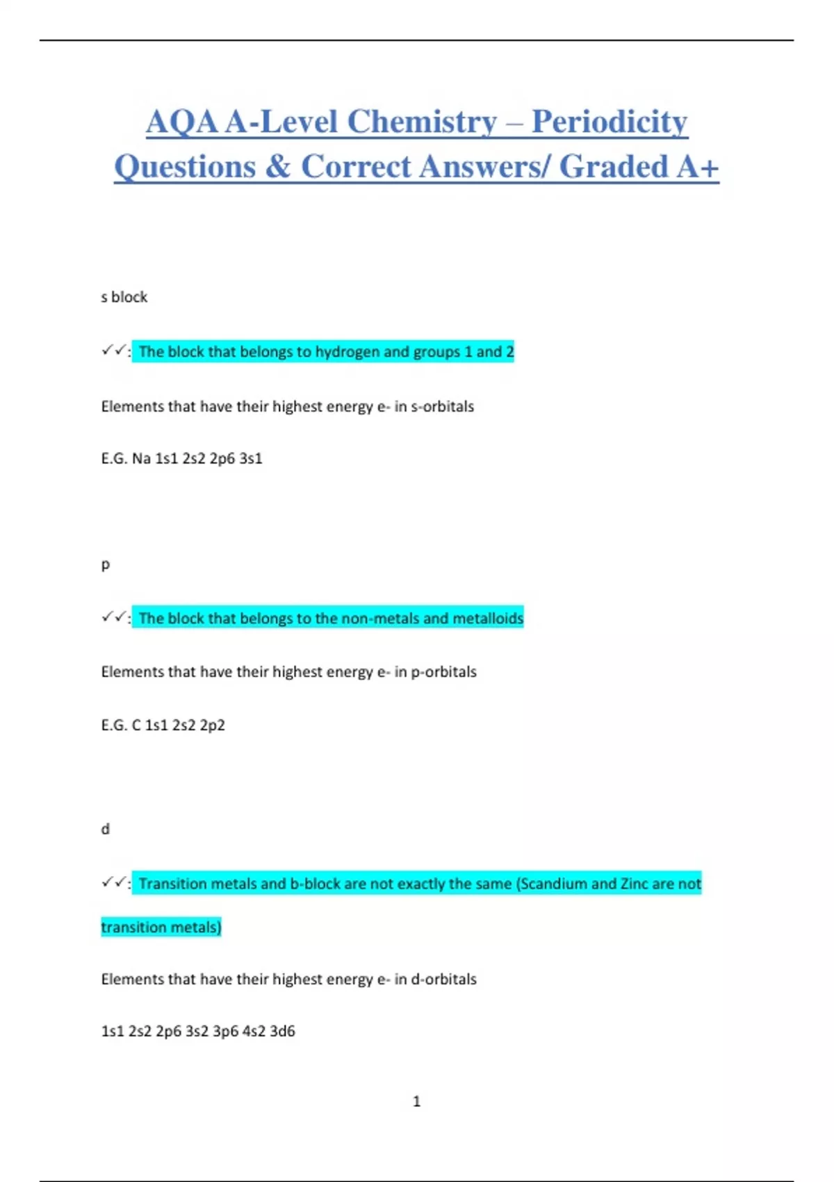 AQA A-Level Chemistry – Periodicity Questions & Correct Answers/ Graded A+