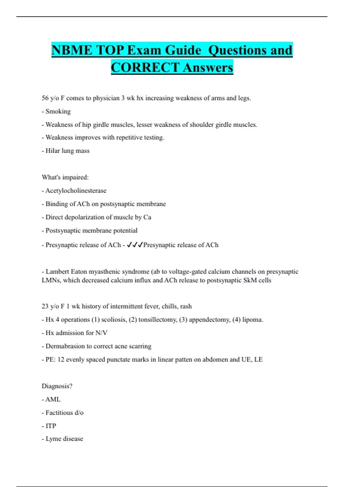 NBME TOP Exam Guide Questions and CORRECT Answers