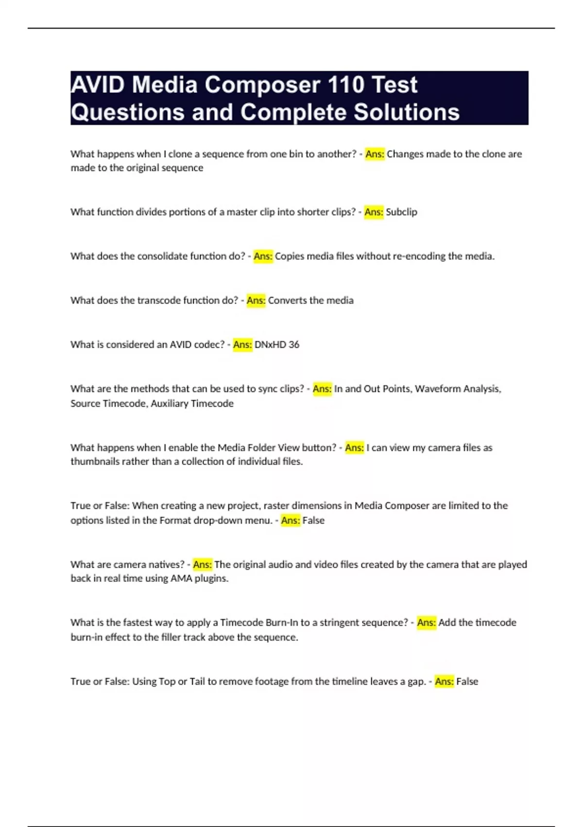 AVID Media Composer 110 Test Questions and Complete Rationales