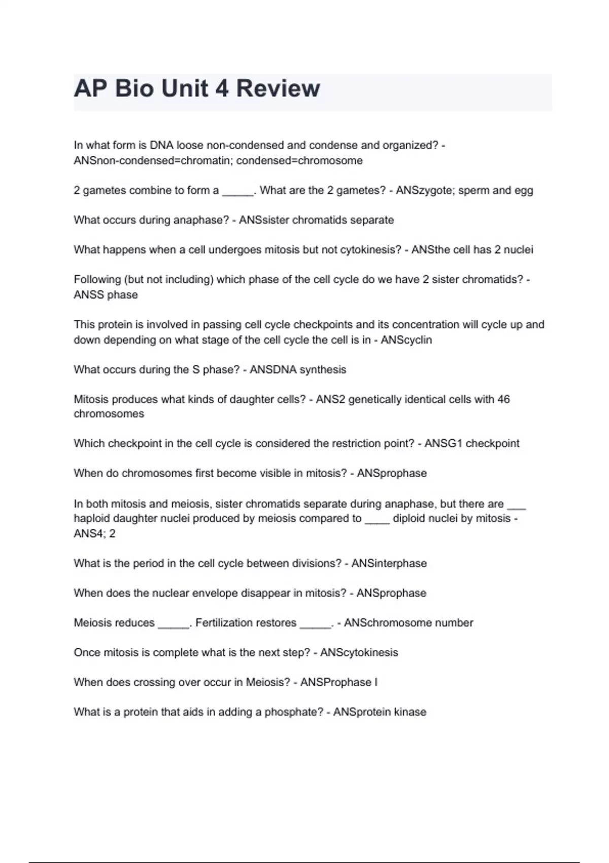 AP Bio Unit 4 Review questions and answers guaranteed pass 2024/2025