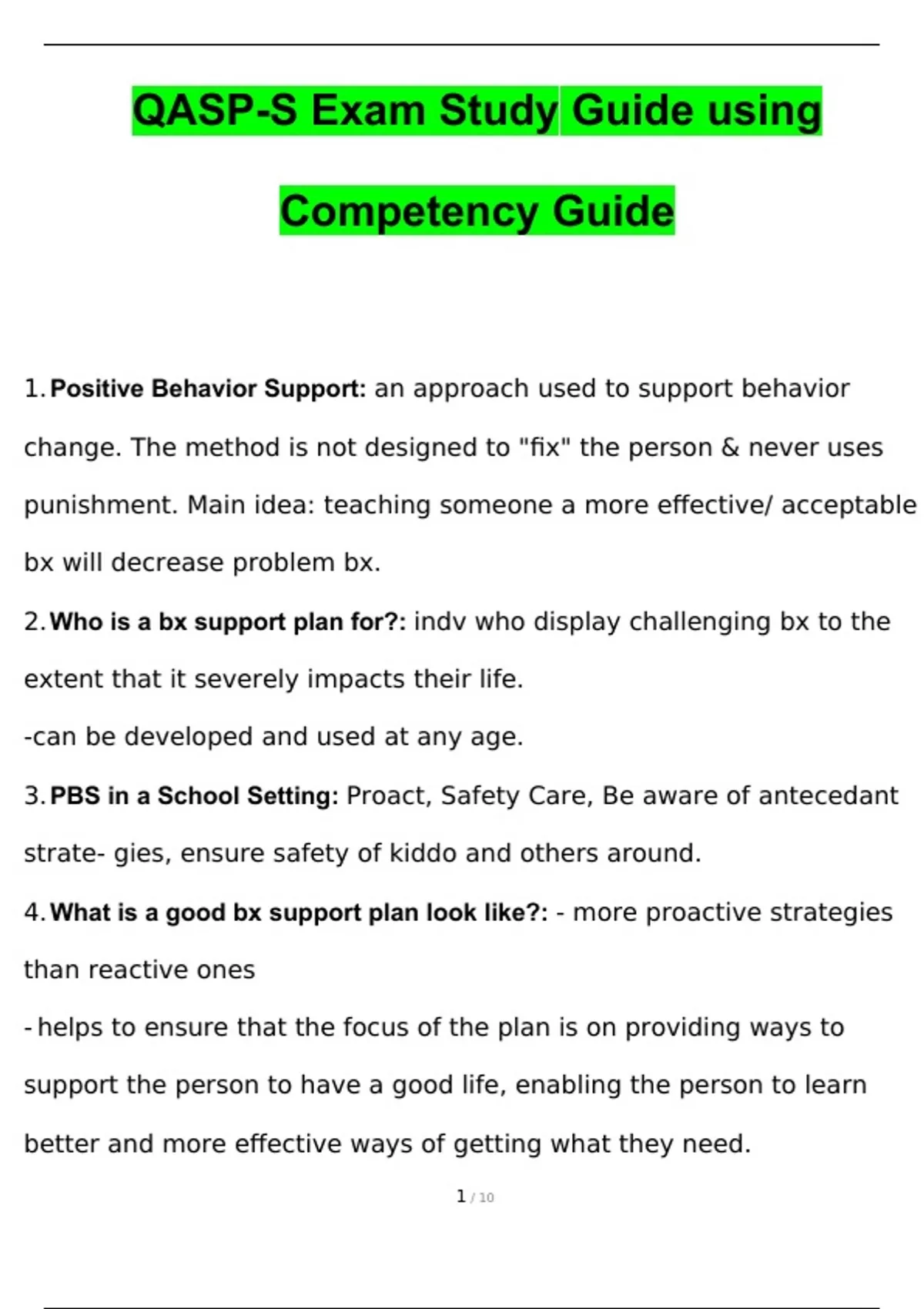 QASP-S Exam Study Guide using Competency Guide Questions with 100% Correct Answers | Verified | Updated 2024