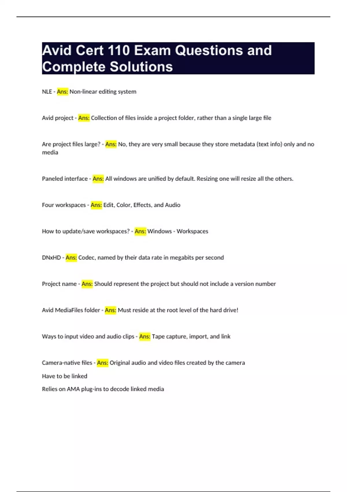 Avid Cert 110 Exam Questions and Complete Solutions.