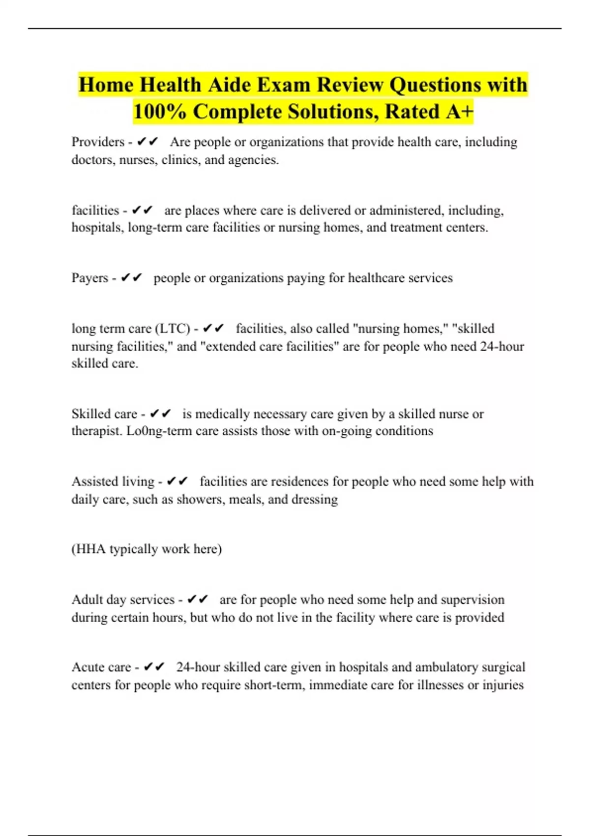 Home Health Aide Exam Review Questions with 100% Complete Solutions, Rated A+