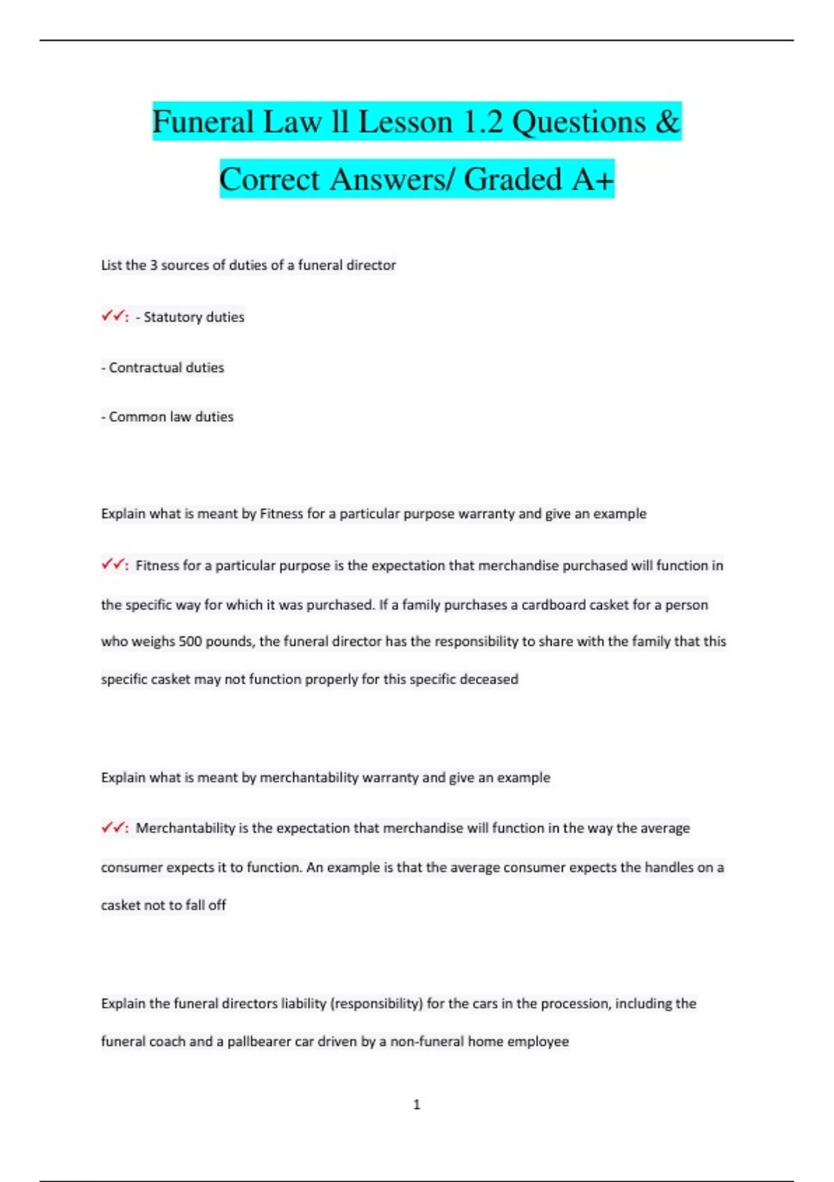 Funeral Law ll Lesson 1.2 Questions & Correct Answers/ Graded A+