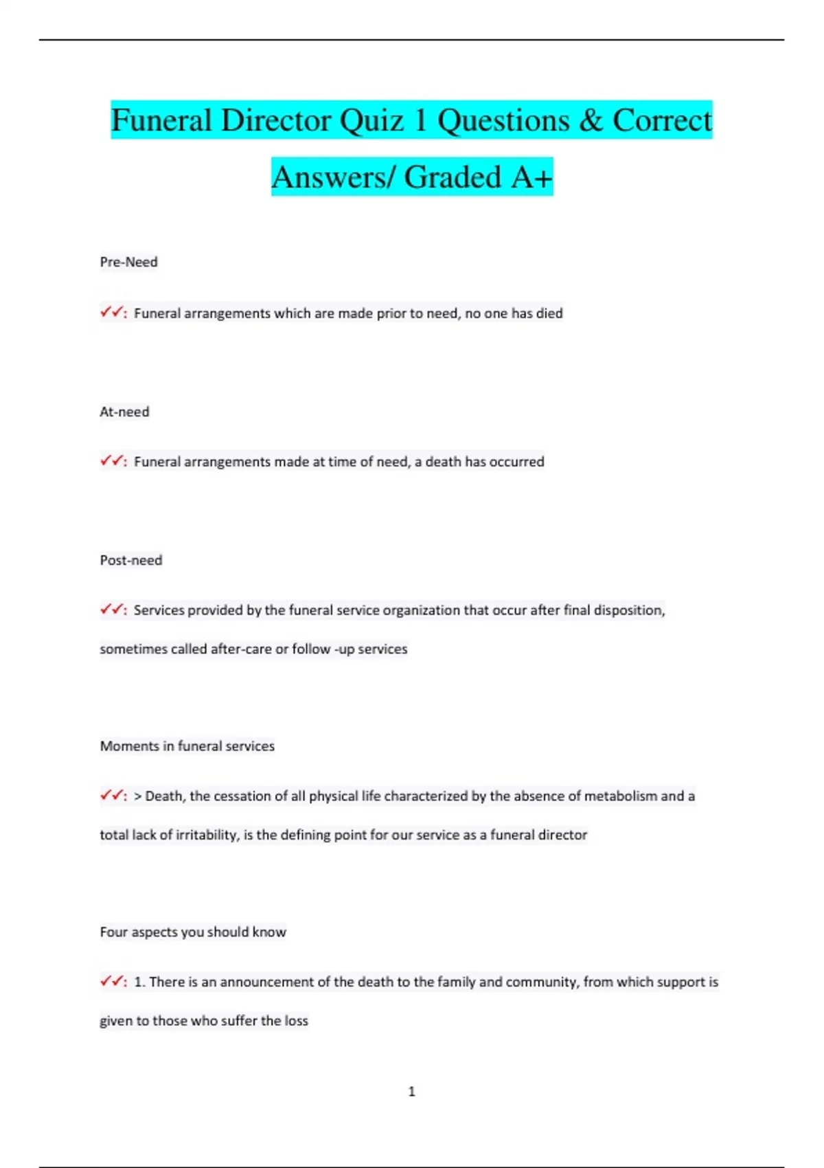 Funeral Director Quiz 1 Questions & Correct Answers/ Graded A+