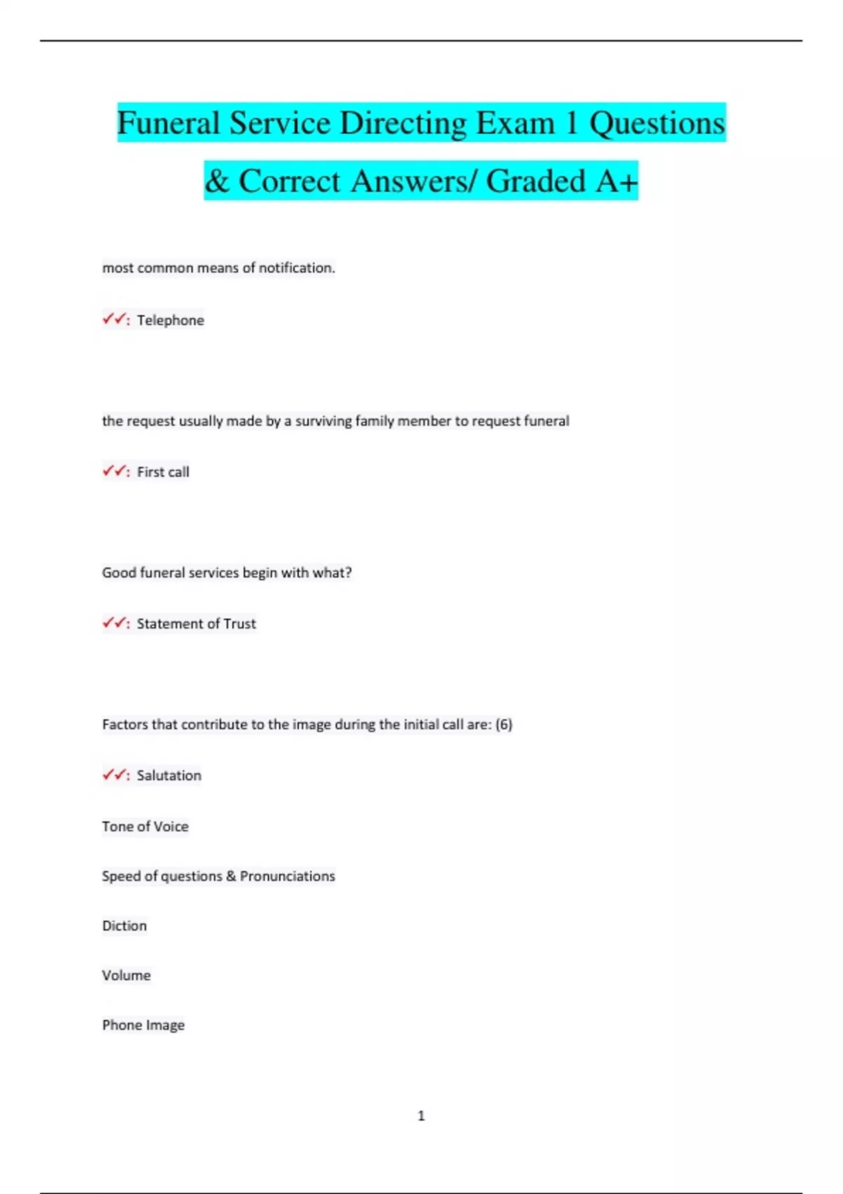 Funeral Service Directing Exam 1 Questions & Correct Answers/ Graded A+