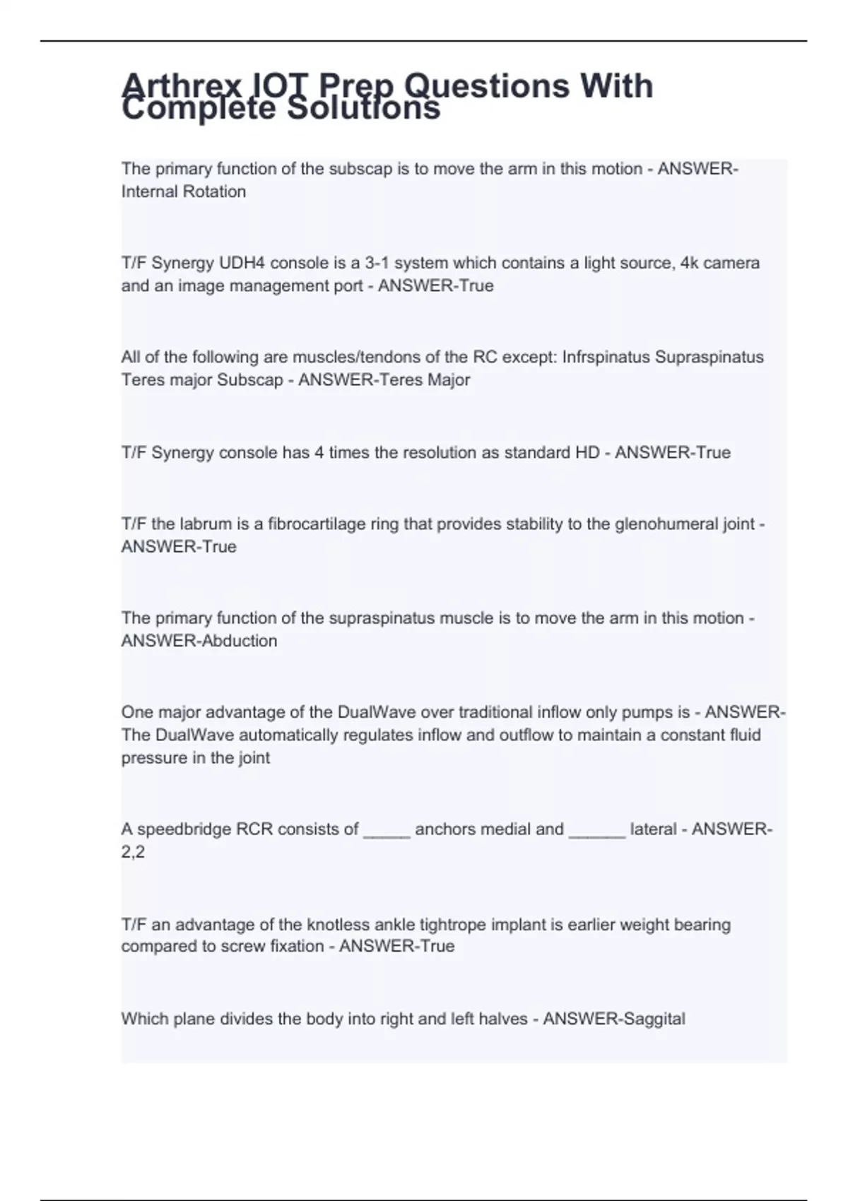 Arthrex IOT Prep Questions With Complete Solutions