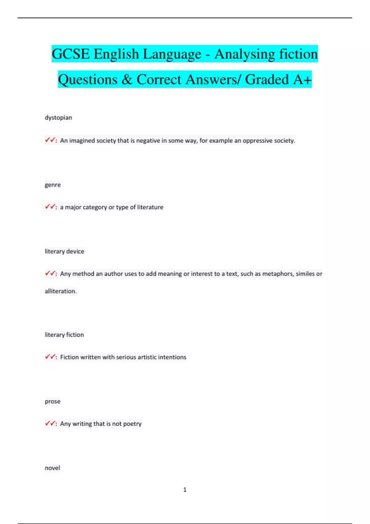 GCSE English Language - Analysing fiction Questions & Correct Answers/ Graded A+