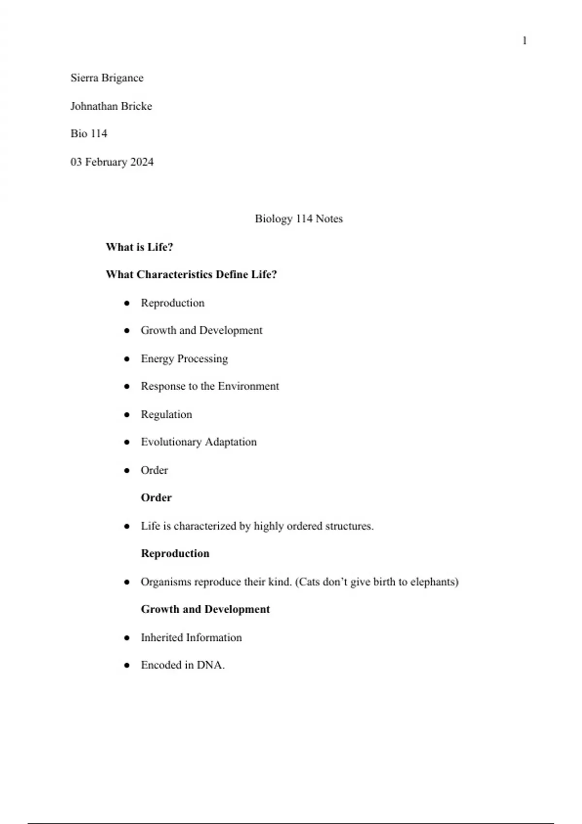 A set of class notes for Biology 114-1305; Heredity evolution & Society.