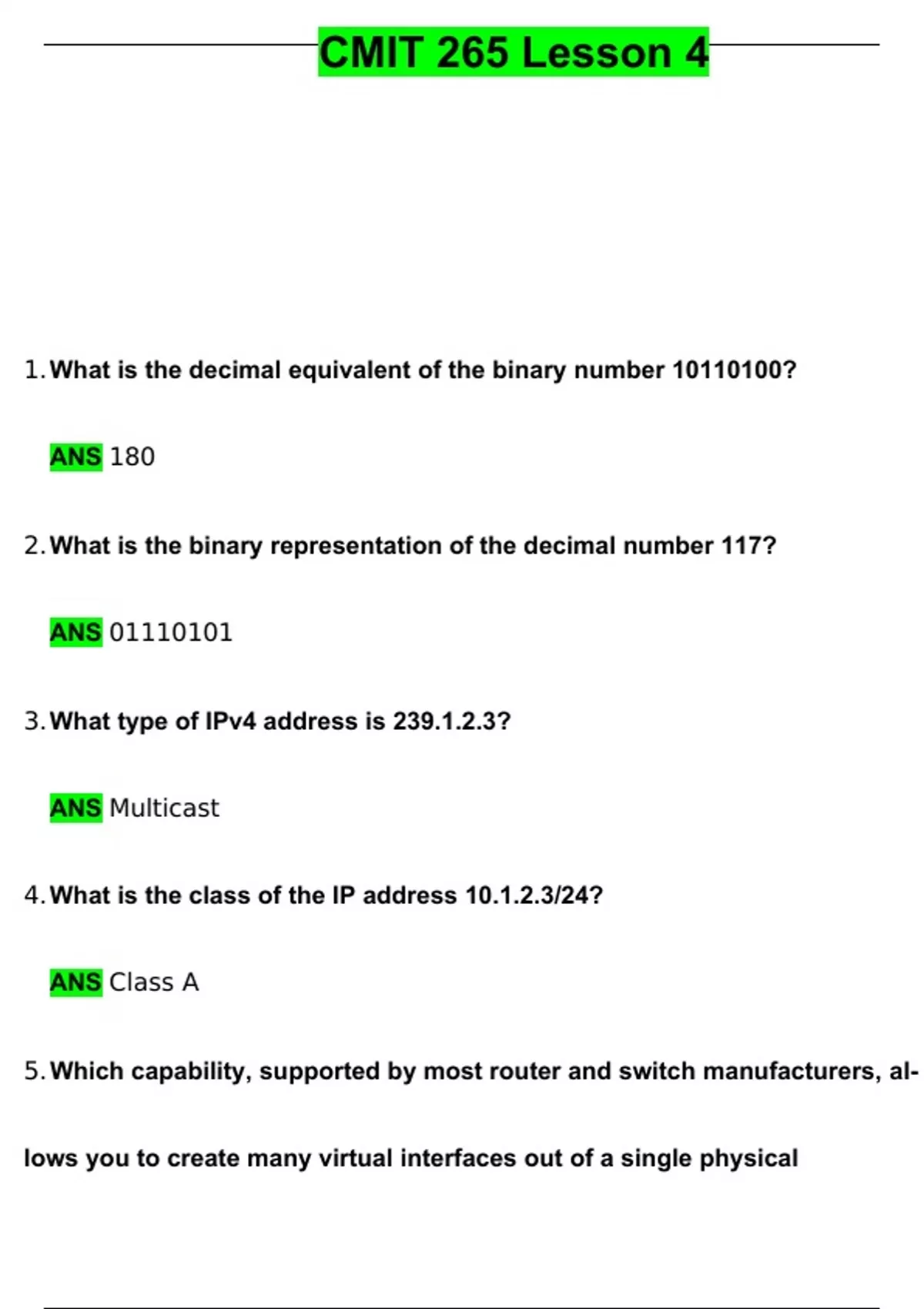 CMIT 265 Lesson 4 Questions with 100% Correct Answers | Verified | Updated 2024