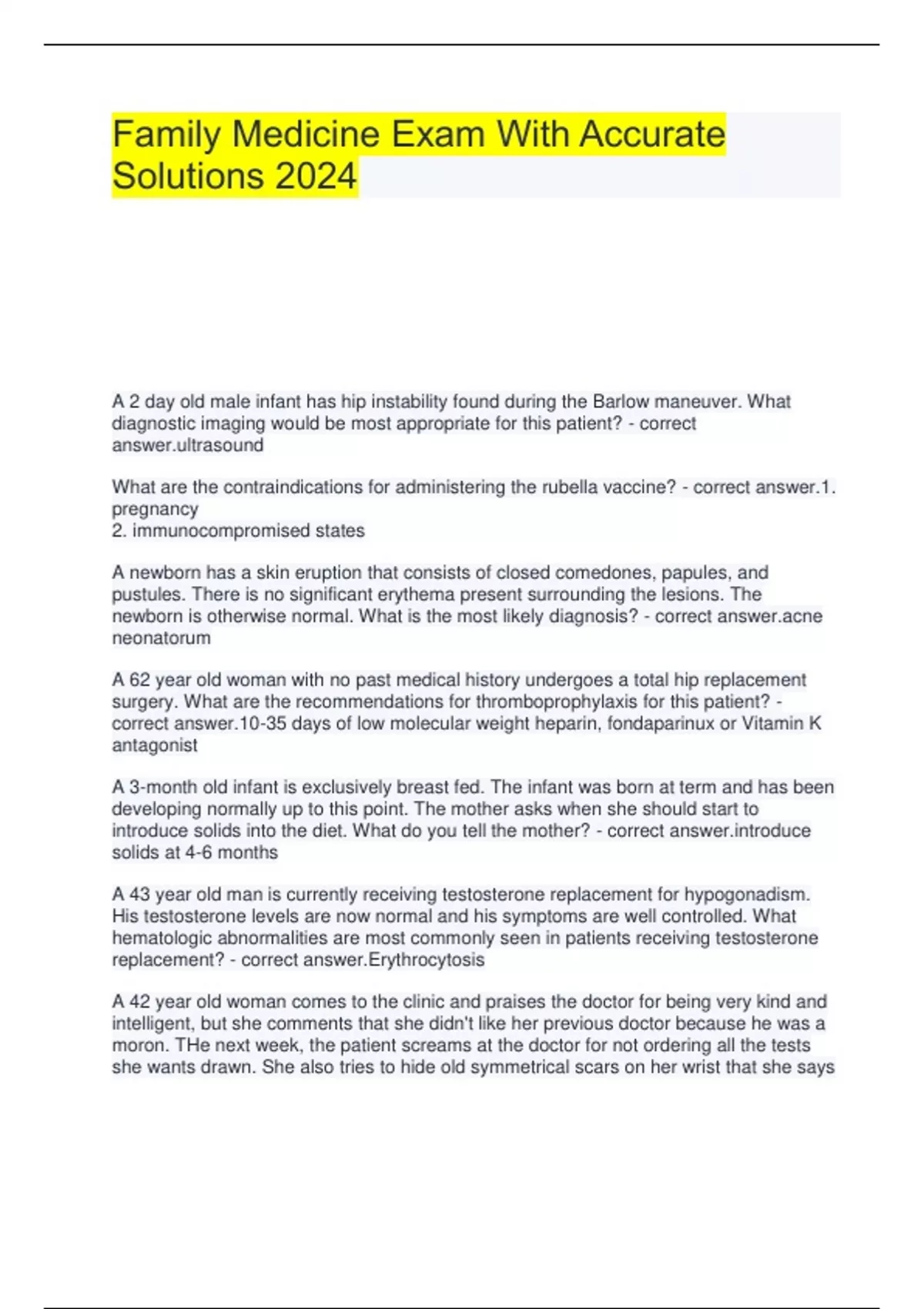 family medicine exam with accurate solutions 2024