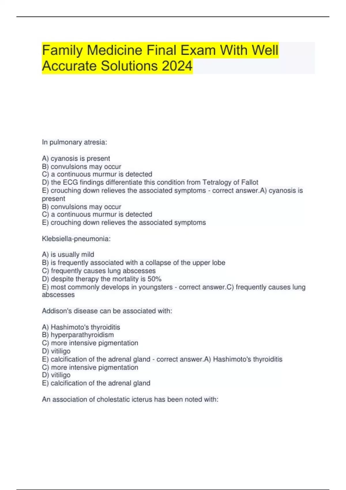 Family Medicine Final Exam With Well Accurate Solutions 2024