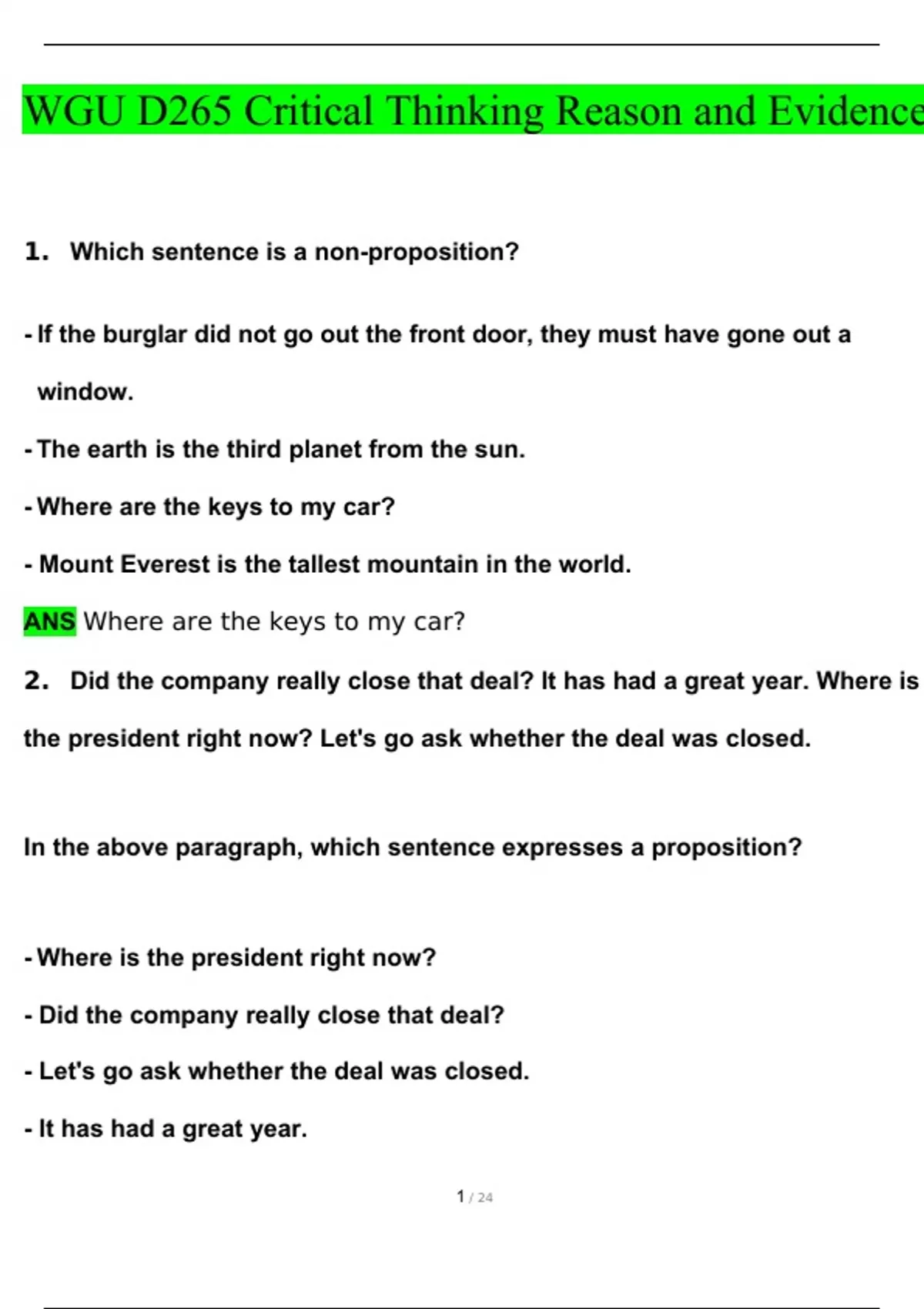 1. Which sentence is a non-proposition?