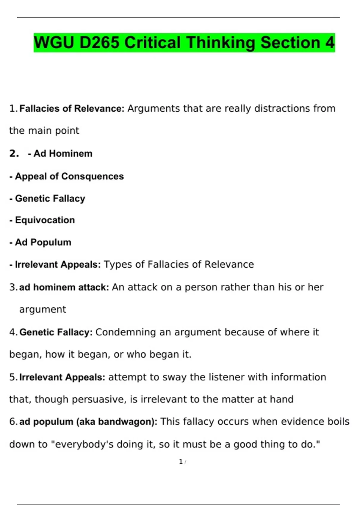 1.Fallacies of Relevance: Arguments that are really distractions from the main point