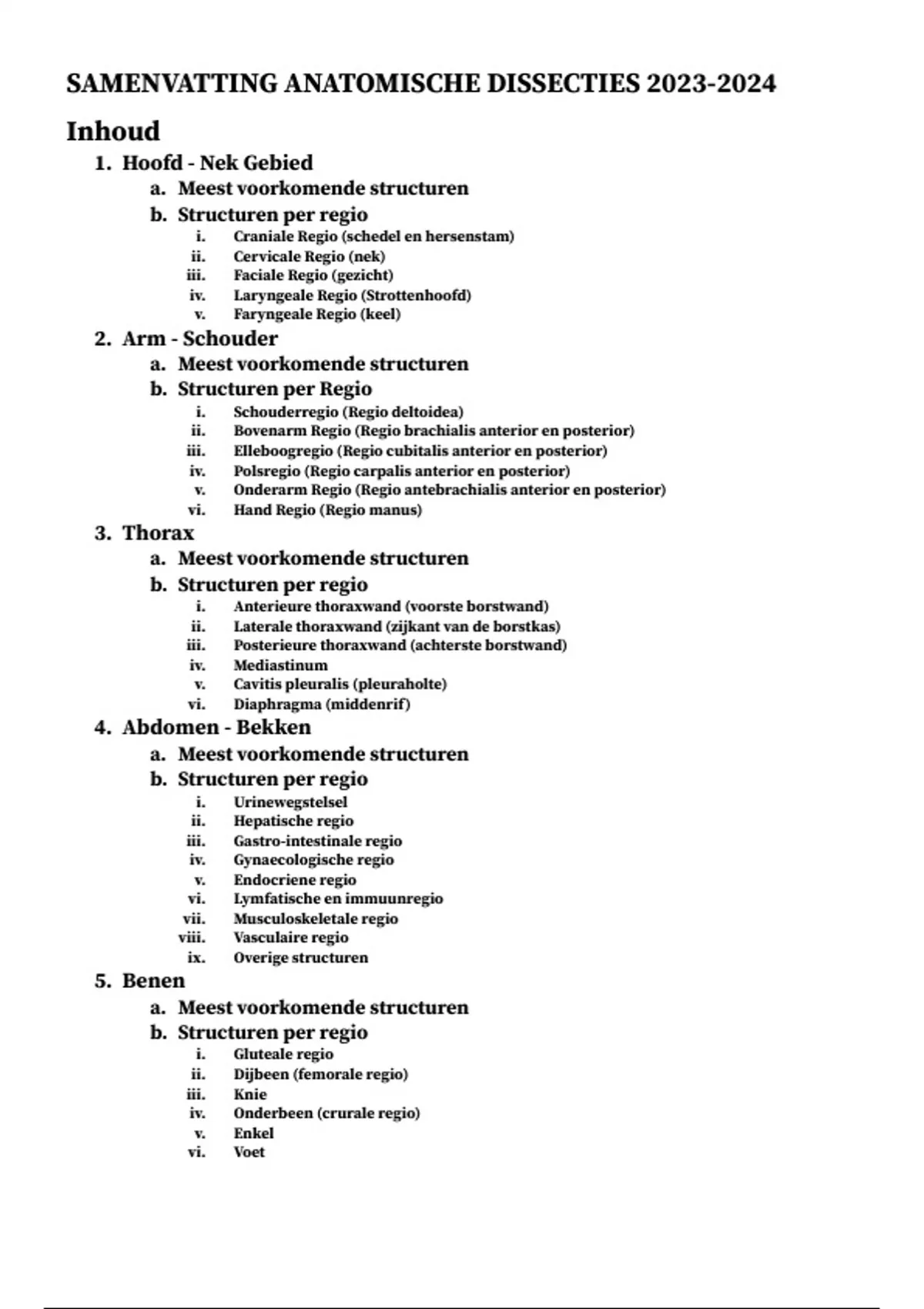 SAMENVATTING ANATOMISCHE DISSECTIES 2023-2024
