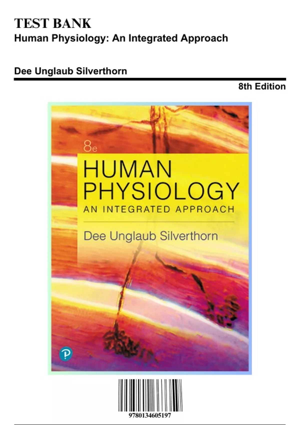 Test Bank for Human Physiology An Integrated Approach, 8th Edition by Silverthorn, 9780134605197, Covering Chapters 1-26 | Includes Rationales