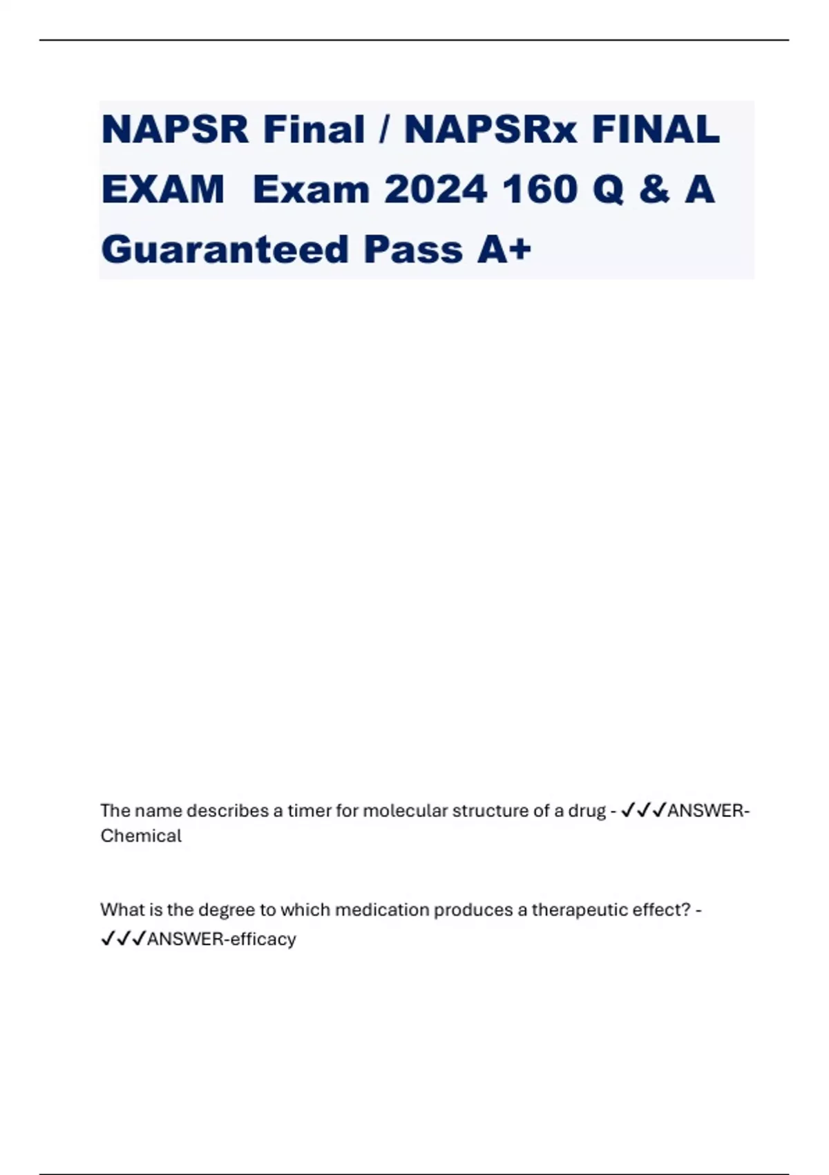 NAPSR Final / NAPSRx FINAL EXAM Exam 2024 160 Q & A Guaranteed Pass A+