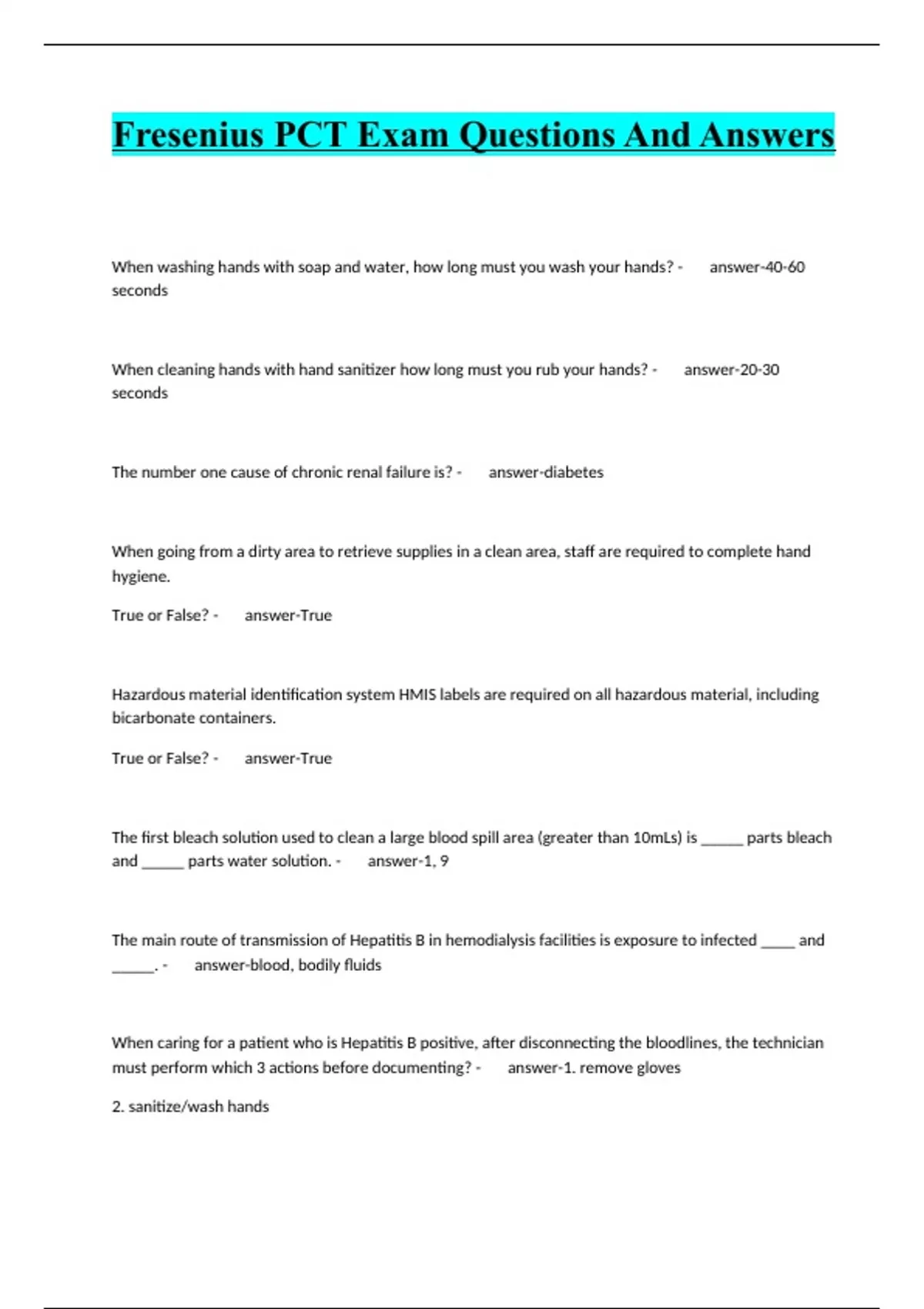 Fresenius PCT exam 100% CORRECT ANSWERS 2023/2024 BUNDLED