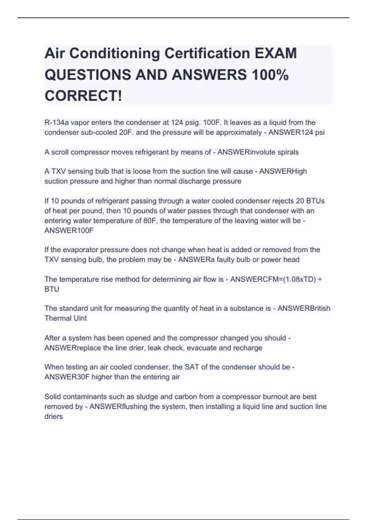 Air Conditioning Certification EXAM QUESTIONS AND ANSWERS 100% CORRECT!