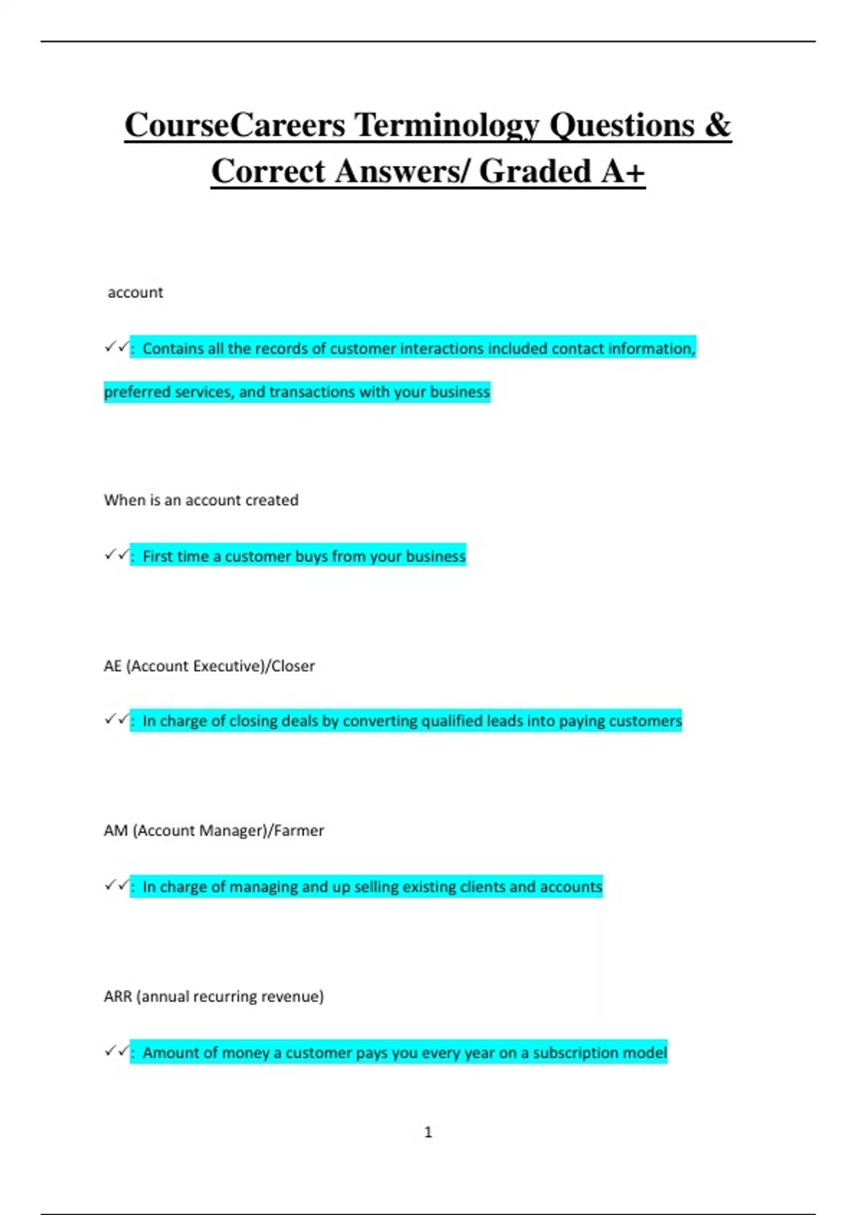 CourseCareers Terminology Questions & Correct Answers/ Graded A+