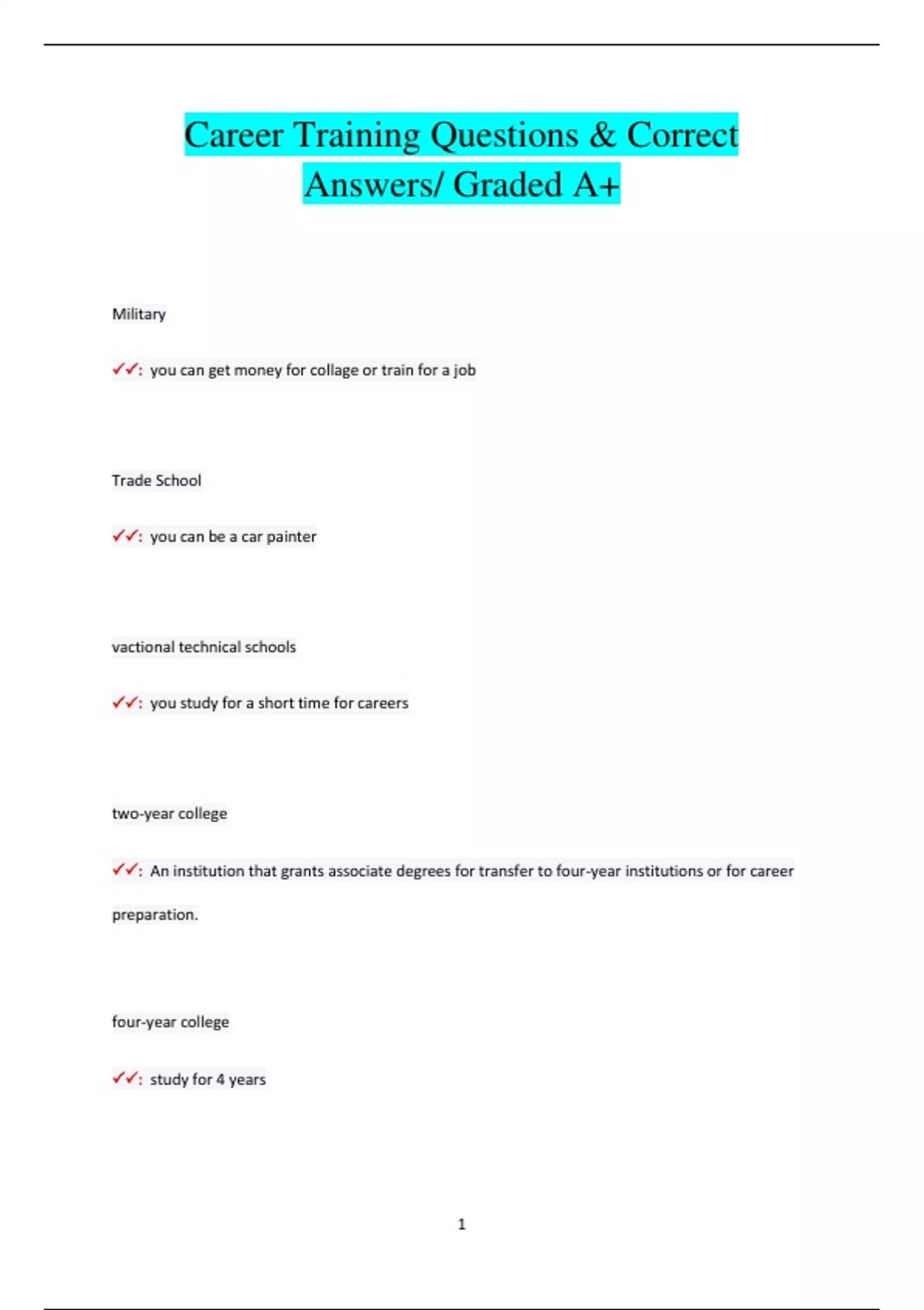Career Training Questions & Correct Answers/ Graded A+