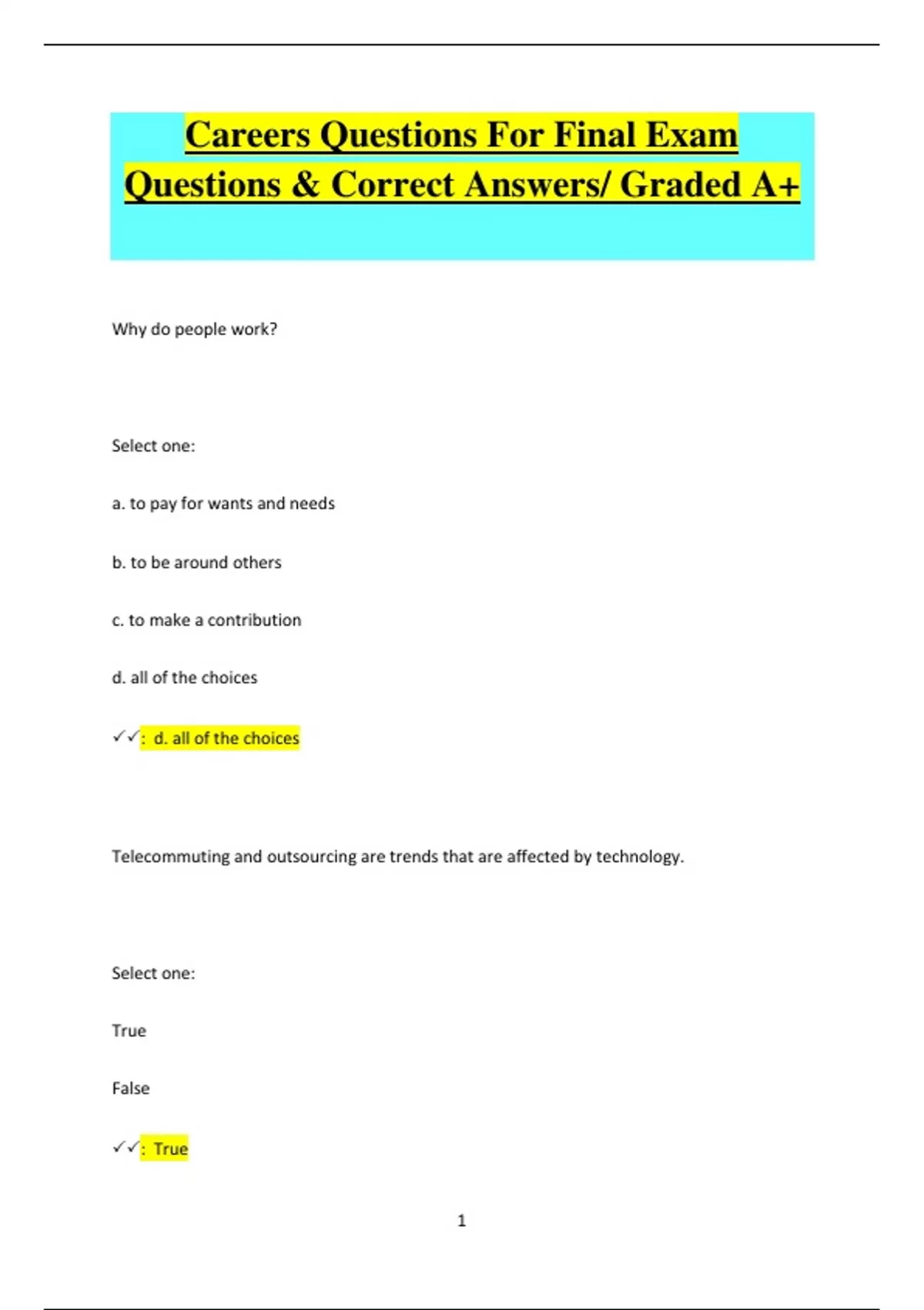 Careers Questions For Final Exam Questions & Correct Answers/ Graded A+