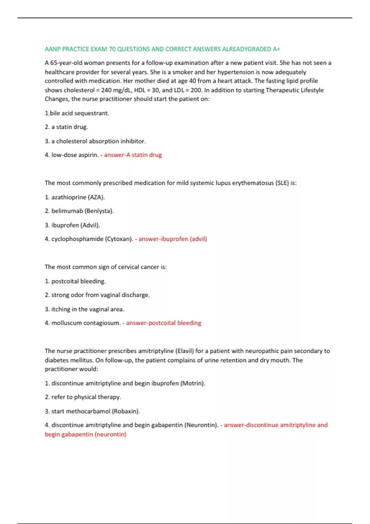 AANP PRACTICE EXAM 70 QUESTIONS AND CORRECT ANSWERS ALREADYGRADED A+ AANP PRACTICE EXAM 70 QUESTIONS AND CORRECT ANSWERS ALREADYGRADED A+ AANP PRACTICE EXAM 70 QUESTIONS AND CORRECT ANSWERS ALREADYGRADED A+ AANP PRACTICE EXAM 70 QUESTIONS AND CORRECT ANSWERS ALREADYGRADED A+