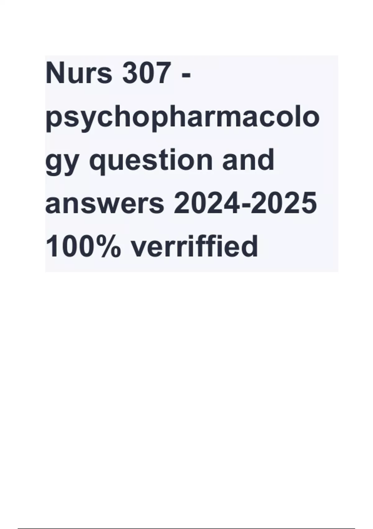 nurs 307 psychopharmacolo gy question and answer