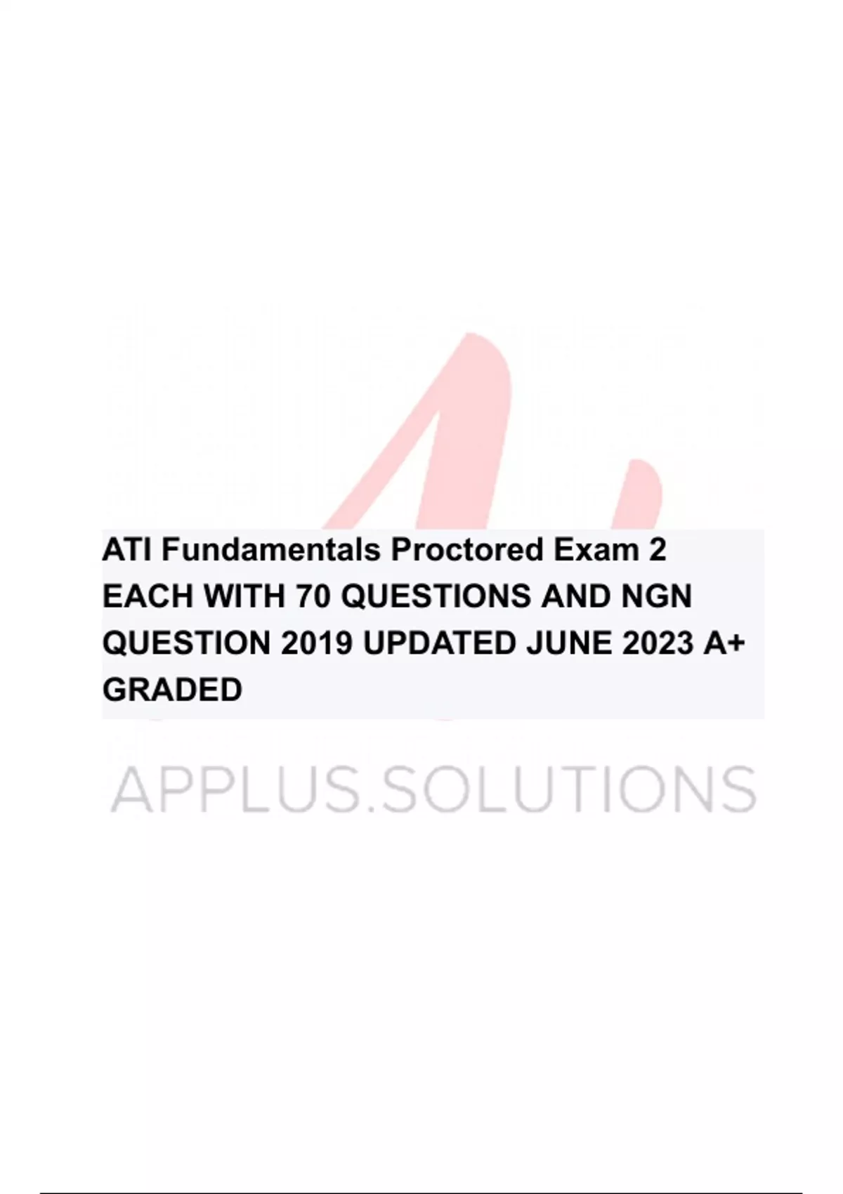 ATI Fundamentals Proctored Exam 2 EACH WITH 70 QUESTIONS AND NGN QUESTION 2019 UPDATED JUNE 2023 A+ GRADED