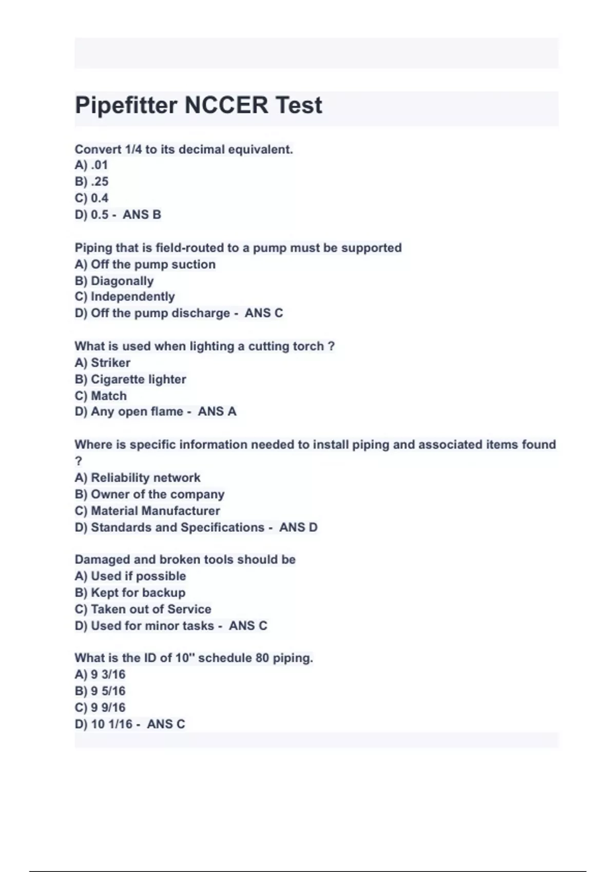 Pipefitter NCCER Test Questions with correct Answers 2024( A+ GRADED 100% VERIFIED).