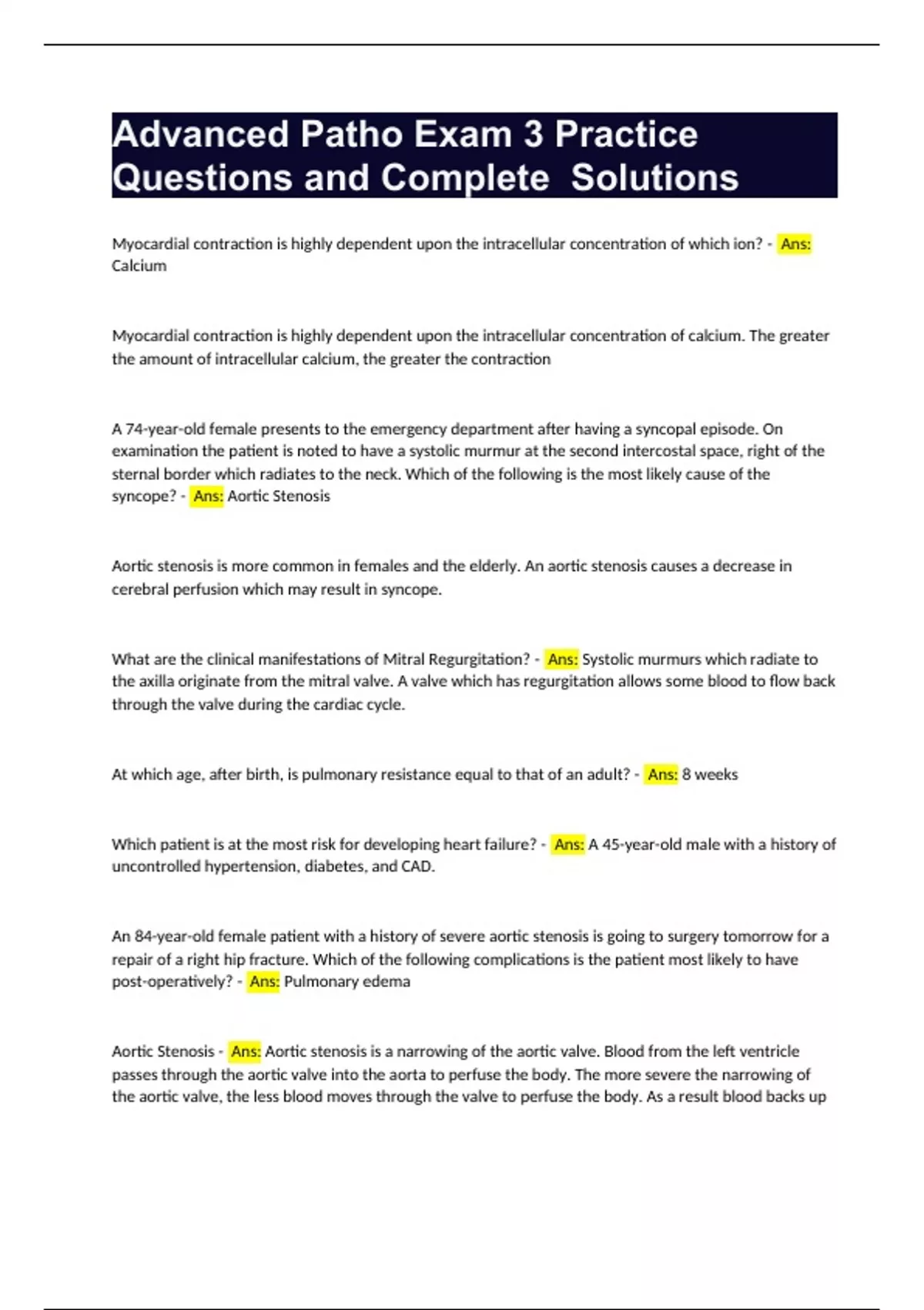 Advanced Patho Exam 3 Practice Questions and Complete Solutions.