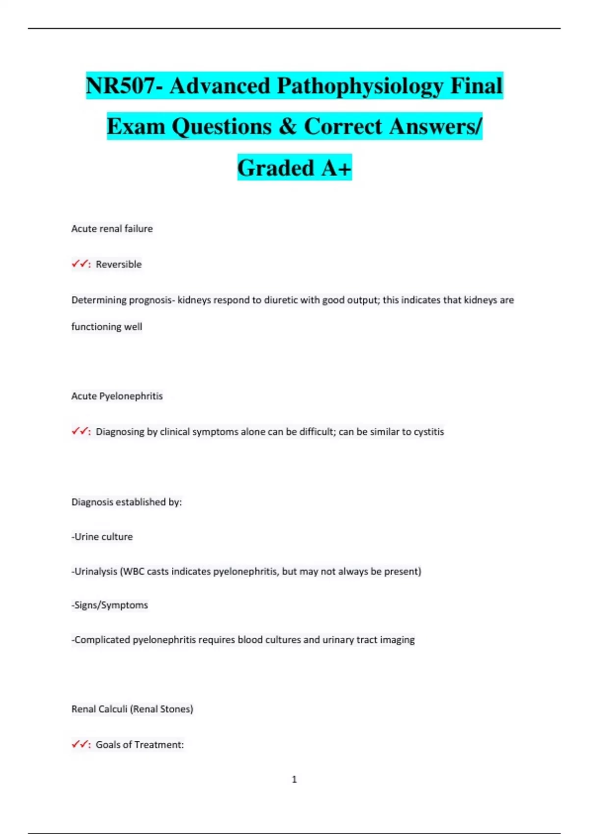 NR507 Advanced Pathophysiology Questions & Correct Answers Pack / Latest Update