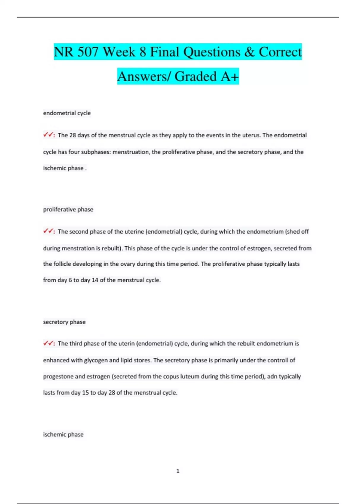 NR 507 Week 8 Final Questions & Correct Answers/ Graded A+