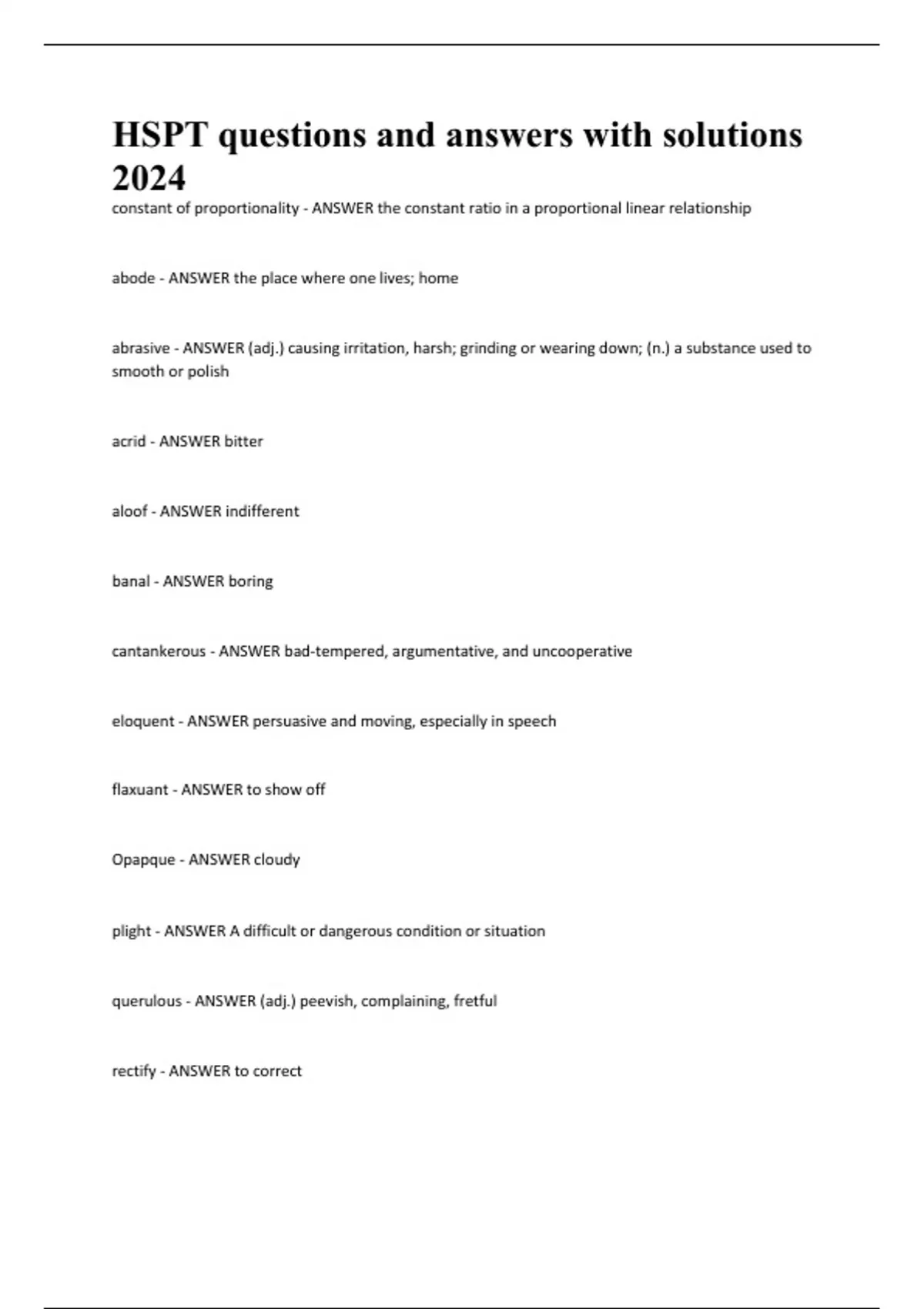 hspt questions and answers with solutions 2024