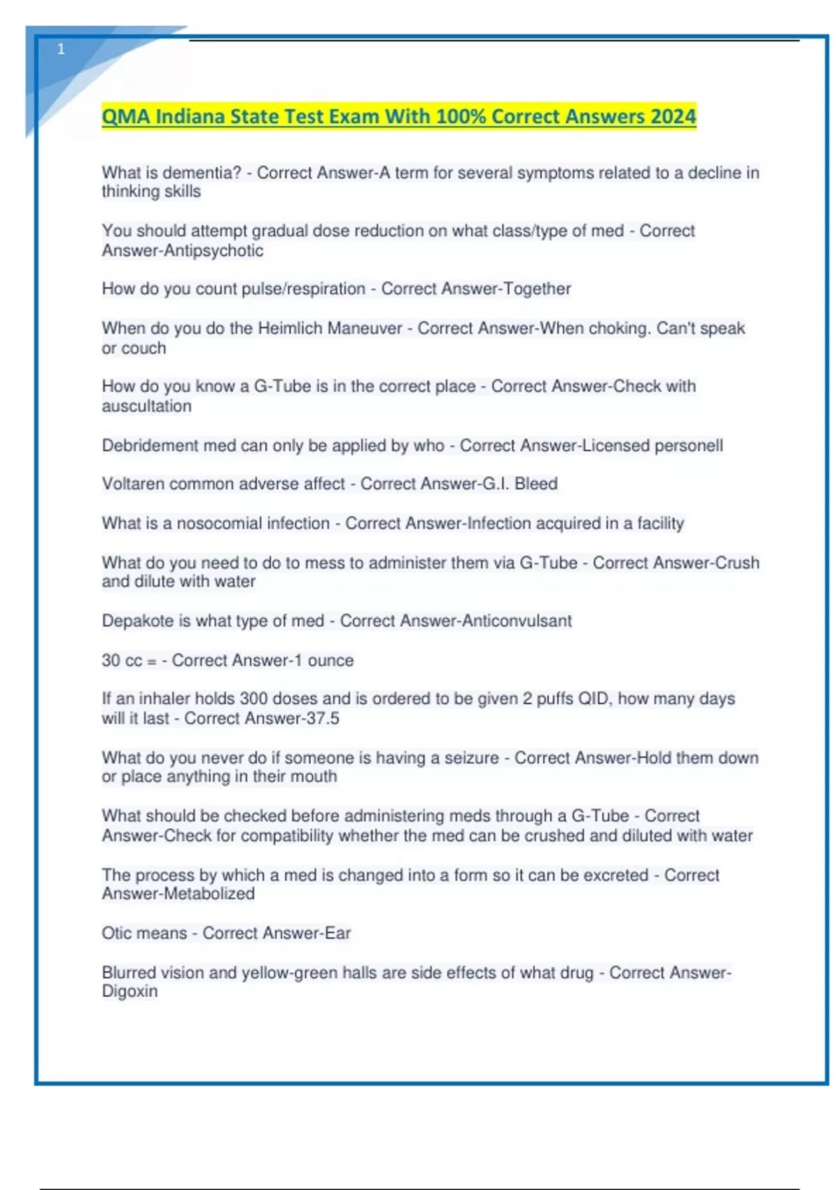 QMA Indiana State Test Exam With 100% Correct Answers 2024.