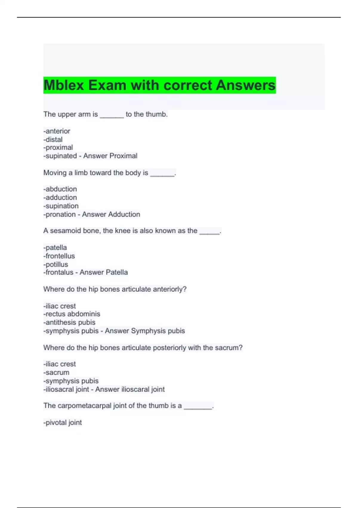 Mblex Exam with correct Answers