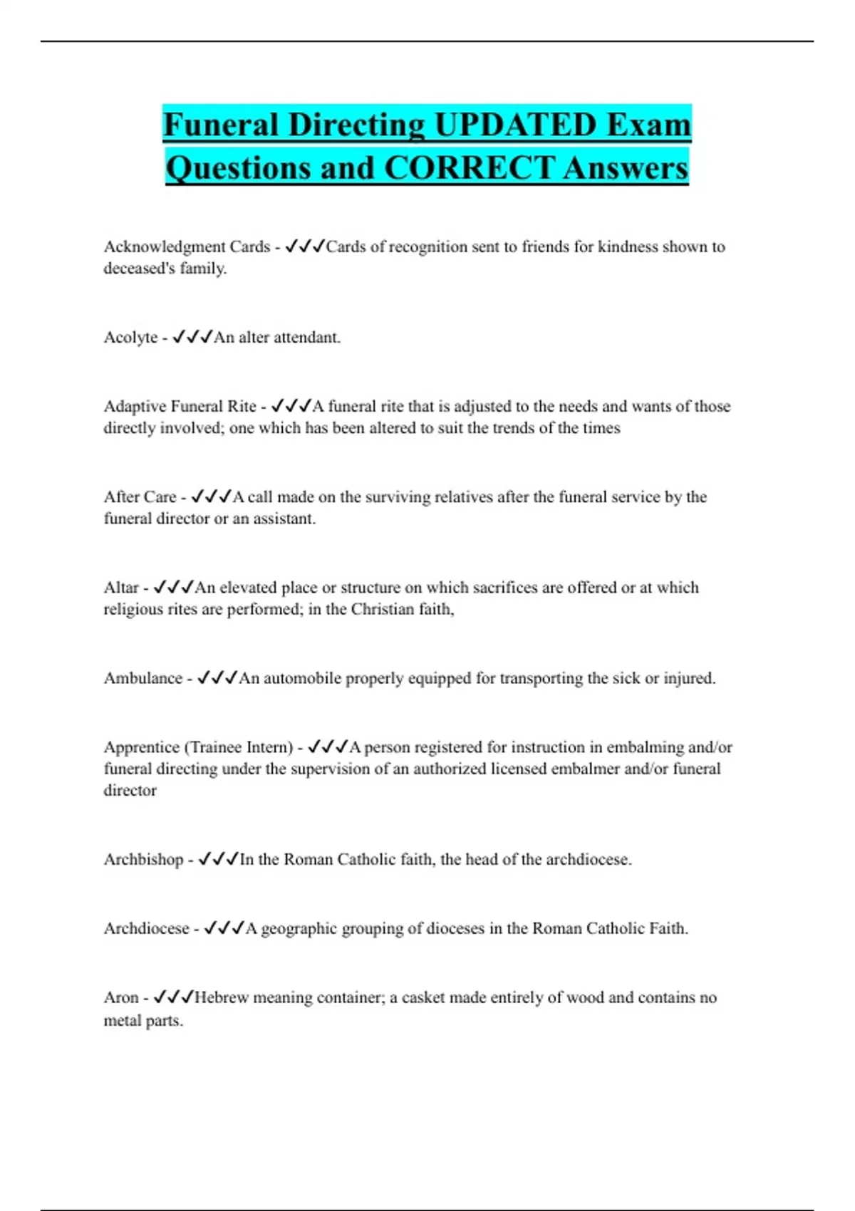 Funeral Directing UPDATED Exam Questions and CORRECT Answers
