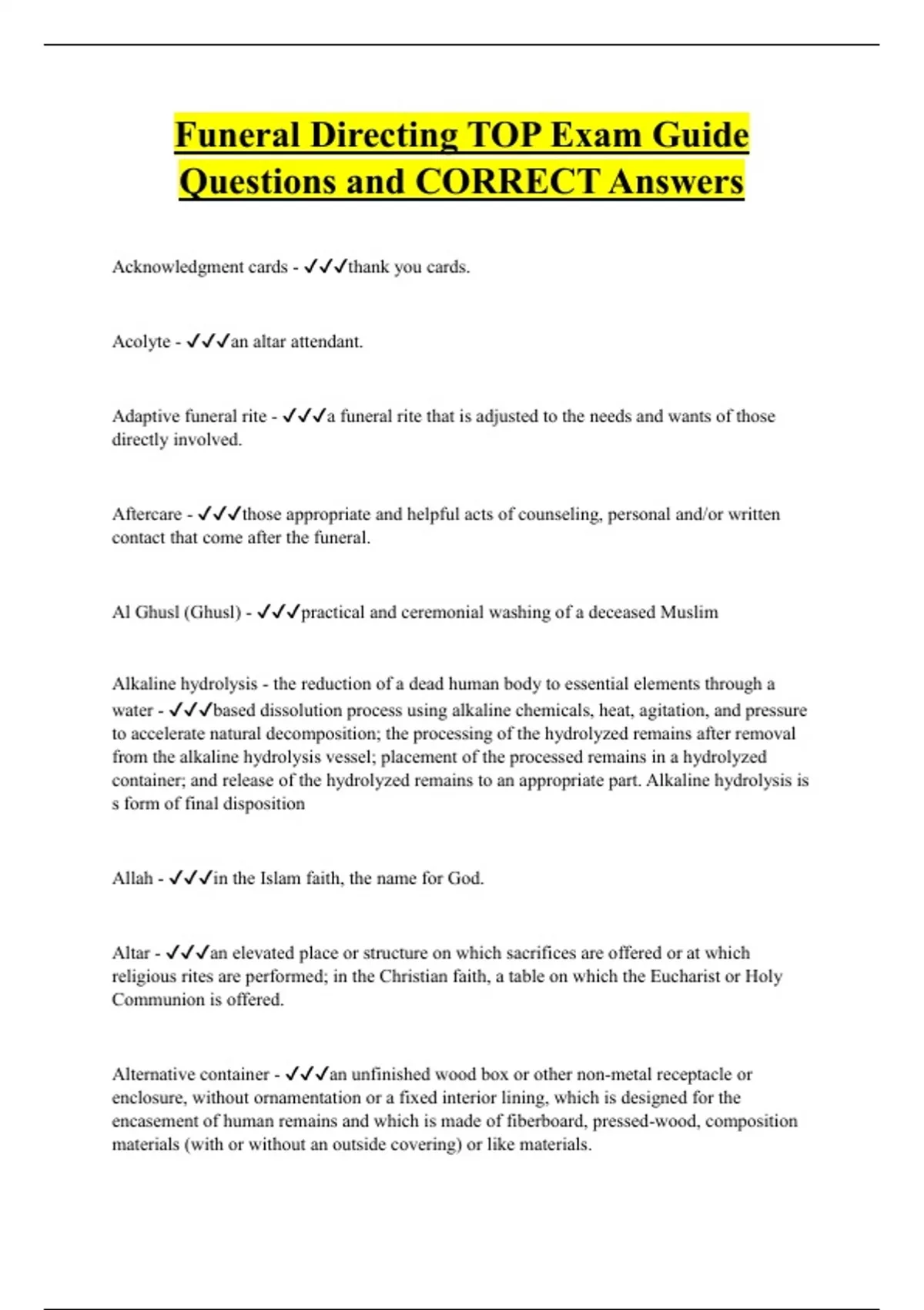 Funeral Directing TOP Exam Guide Questions and CORRECT Answers