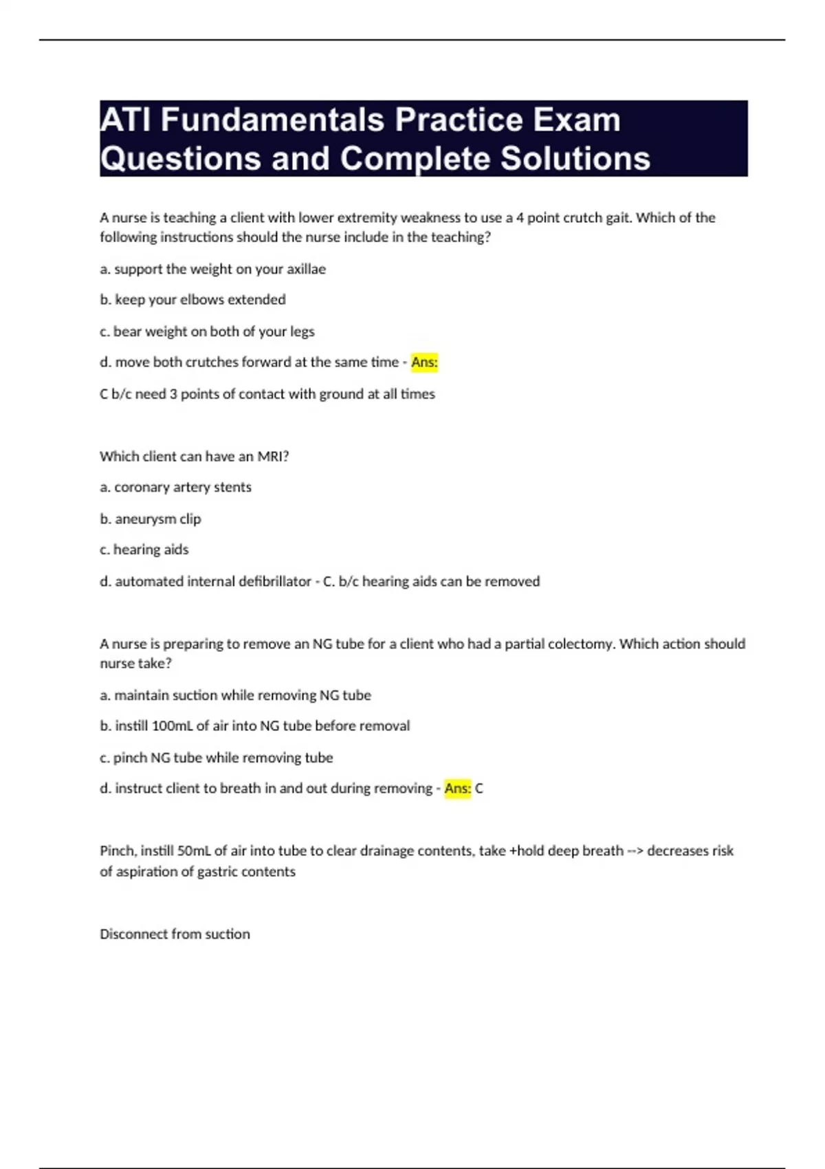 ATI Fundamentals Practice Exam Questions and Complete Rationales.